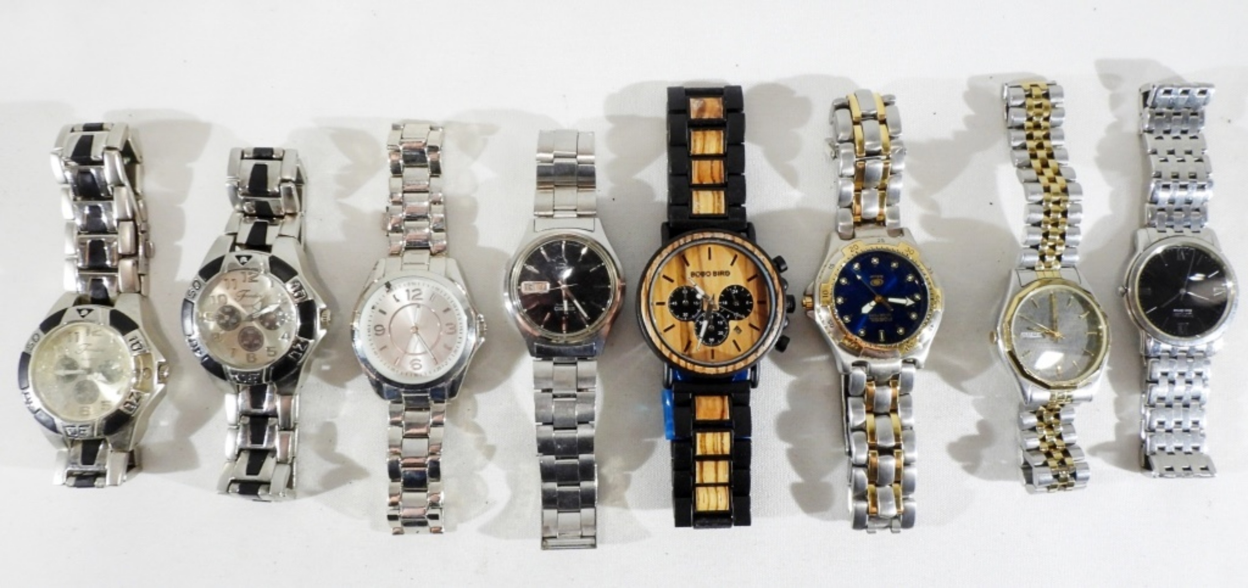 Different styles and conditions, Bobo Bird, Fondini, Seiko, to name a few, in this lot. Watches are not verified, authenticated, or tested in running condition unless specified.