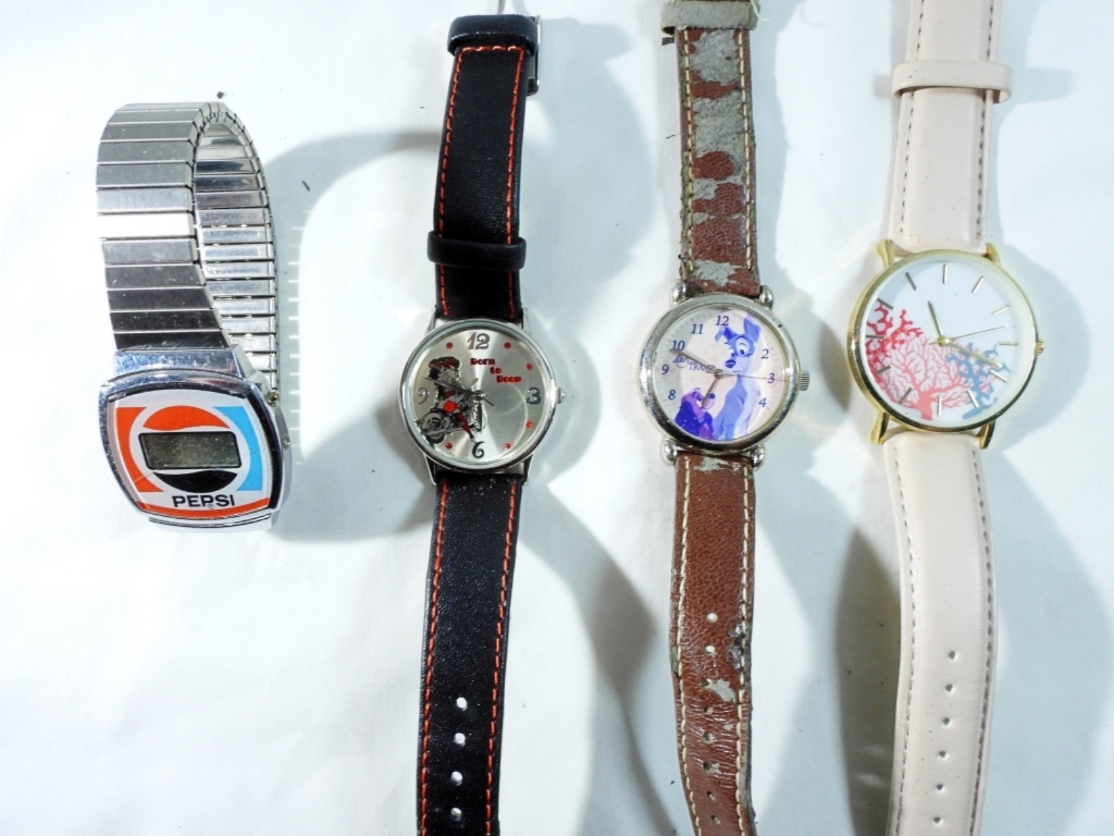 Watches are not verified, authenticated, or tested in running condition unless specified. 4 novelty watches. A Betty Boop, Lady and the Tramp watch, and more. The Lady and the Tramp watch band will need to be repaired.