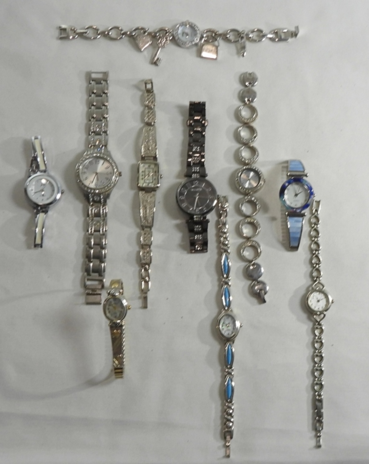 Watches Are Not Verified, Authenticated, or Tested in Running Condition Unless Specified, All silver toned, one is also a charm bracelet