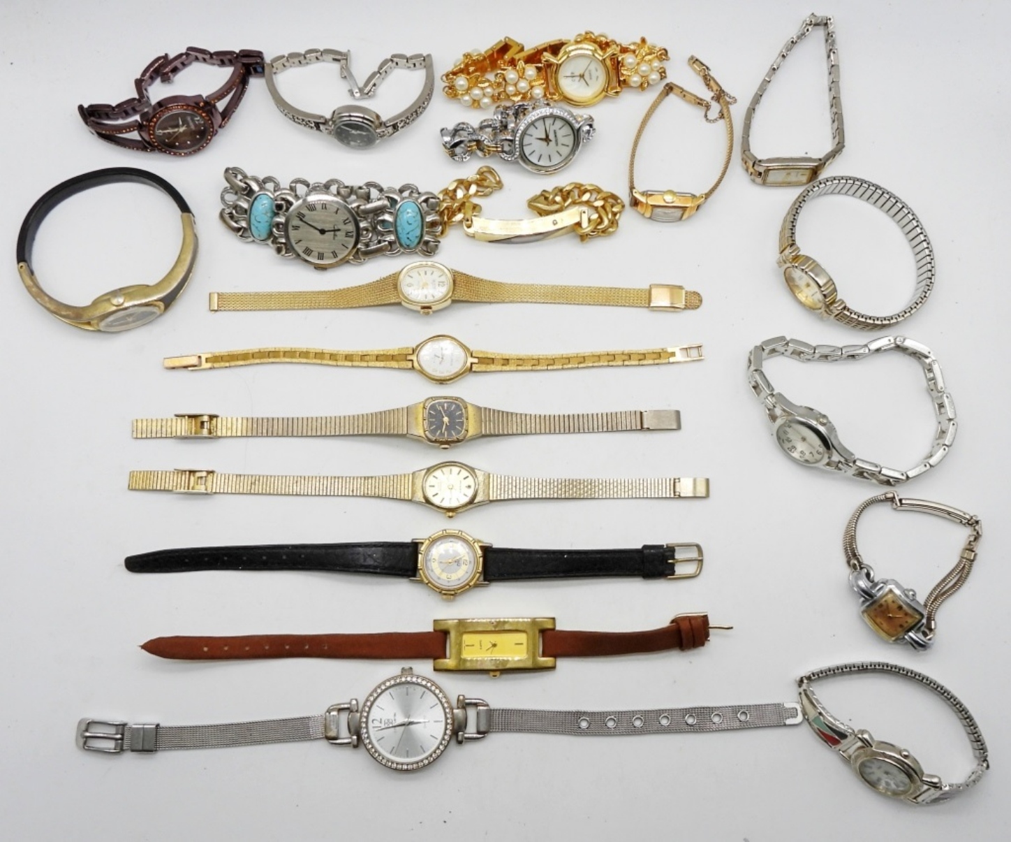 Watches are not verified, authenticated, or tested in running condition unless specified. Mixed lot of 20 women’s watches, a variety of brands.