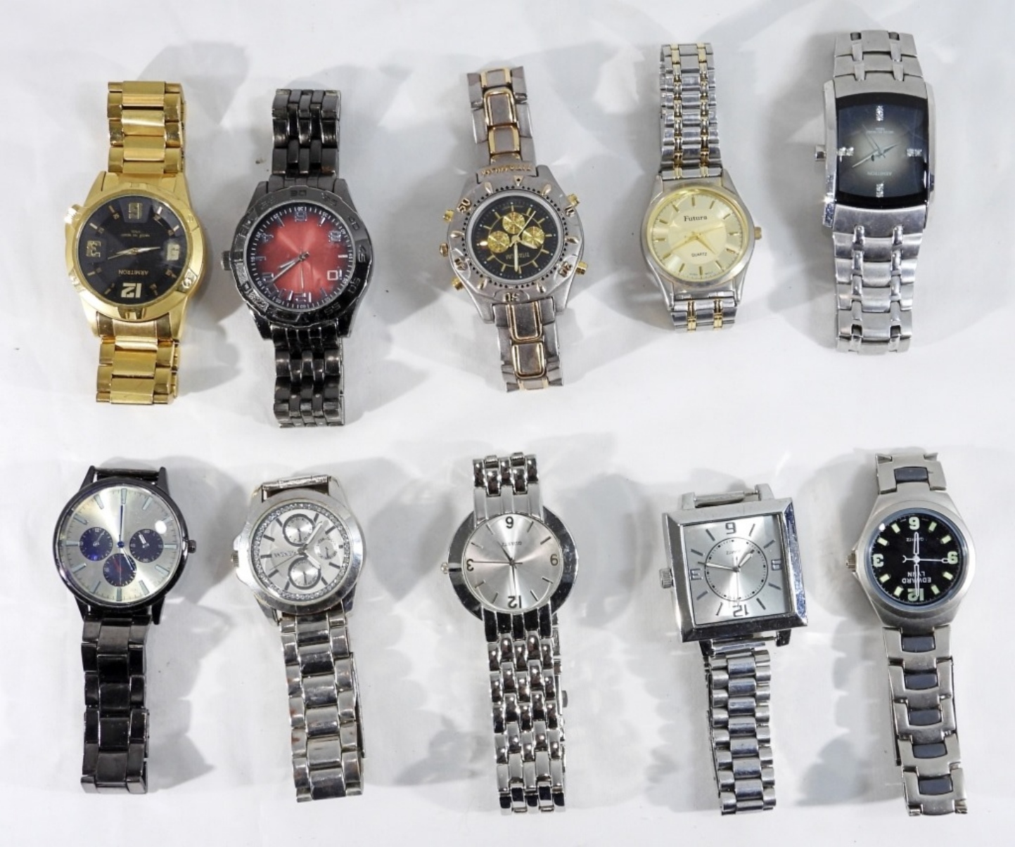 Watches are not verified, authenticated, or tested in running condition unless specified. Mixed lot of 10 men’s watches, a variety of brands.