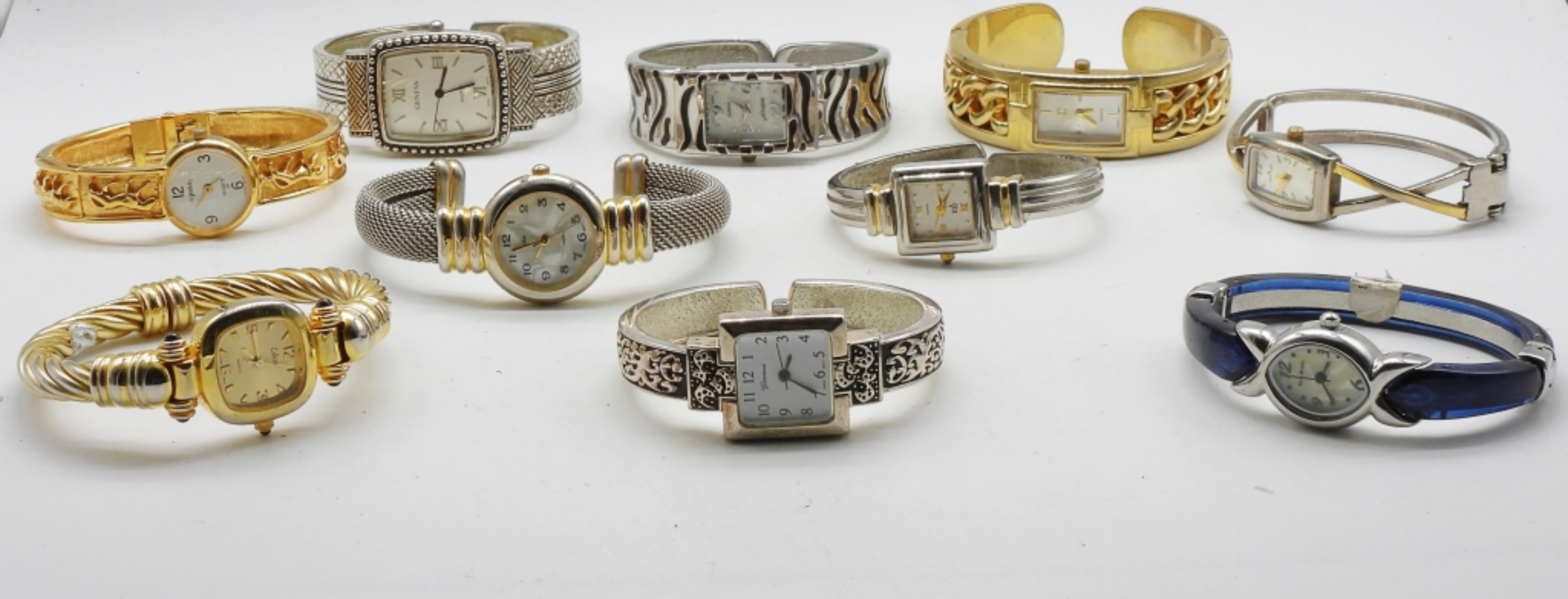 Watches are not verified, authenticated, or tested in running condition unless specified. 10 women’s bangle watches with various brands.