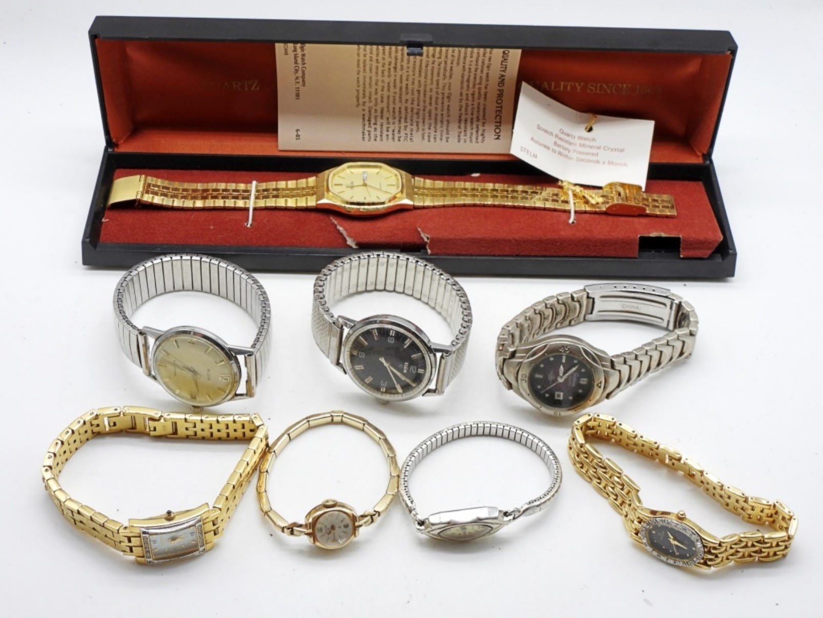 Watches are not verified, authenticated, or tested in running condition unless specified. 4 men’s and 4 women’s Elgin watches. A variety of watches.