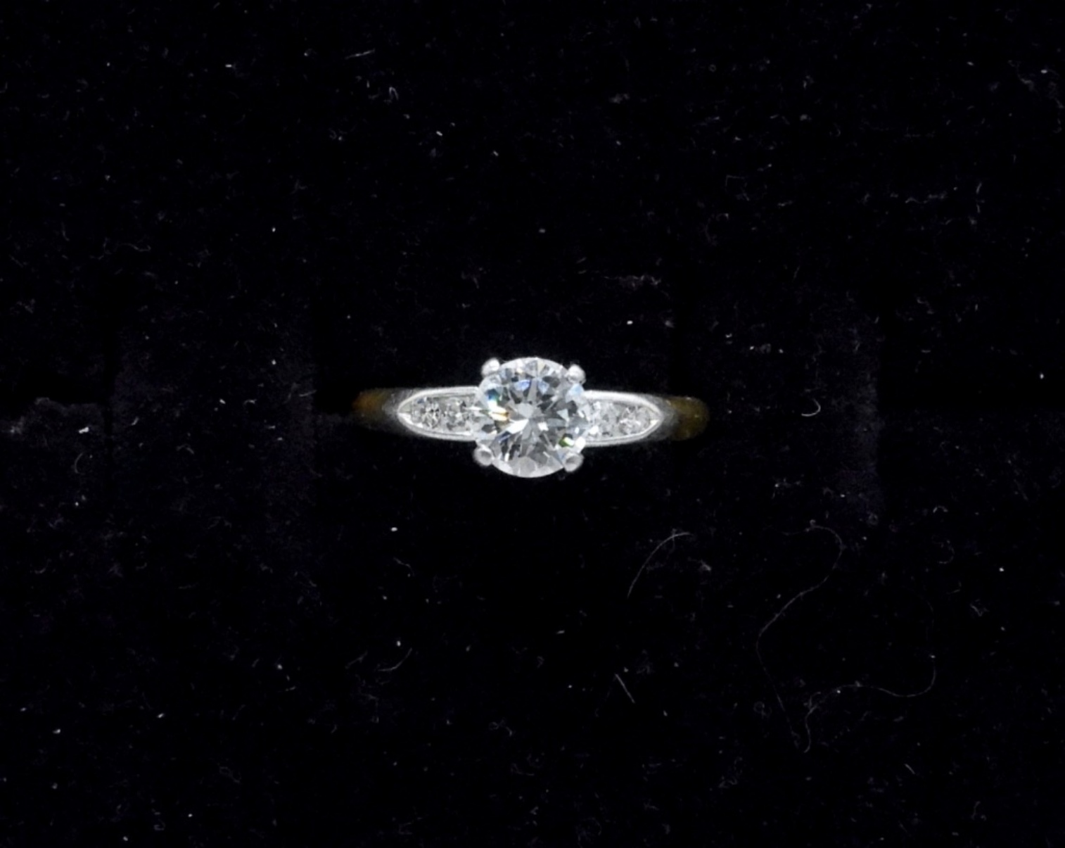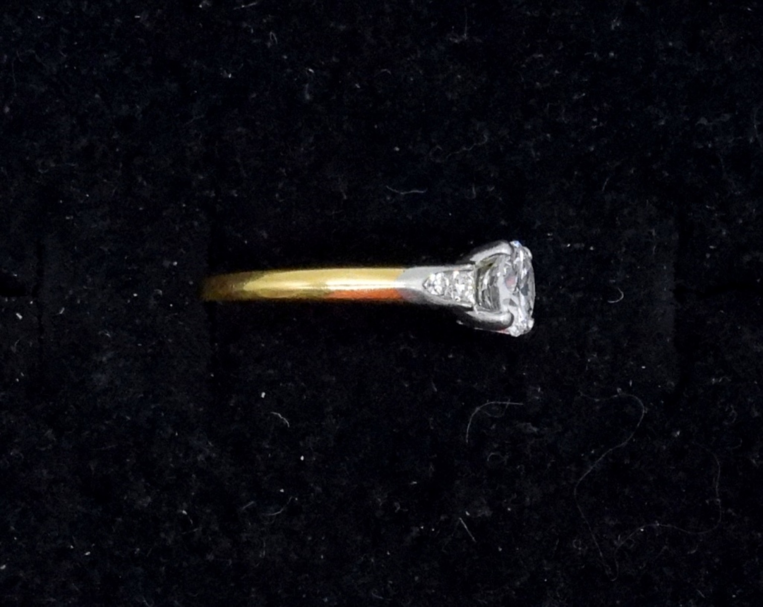 Cartier Diamond Engagement Ring, Size 4. 18k yellow gold band and platinum crown. Center diamond is .63 ct, F, VS. This is a genuine Cartier ring. Engraved “Plat 18k Cartier” & personal engraving “NCG to ETG 1-1-2000”.