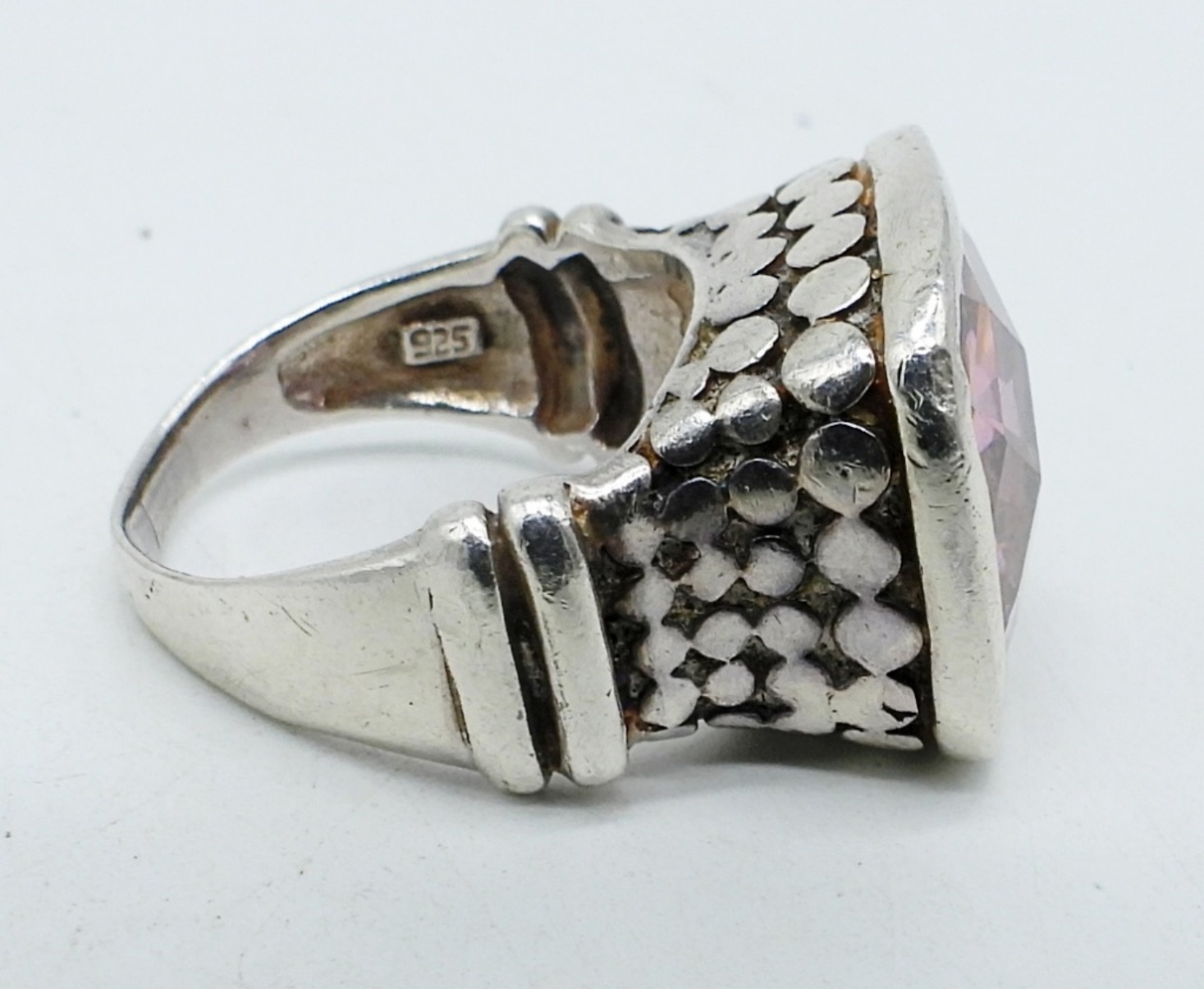 Pink CZ Sterling ring, Size 7. Pink CZ pendant on a 18″ sterling chain. (13 dwt)