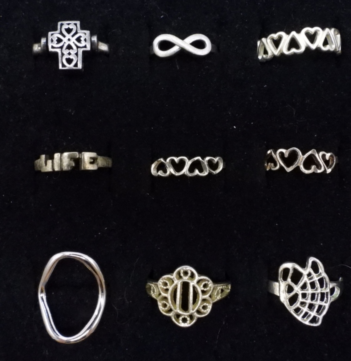 Nine sterling fashion rings. 5-9 (12.4 DWT)