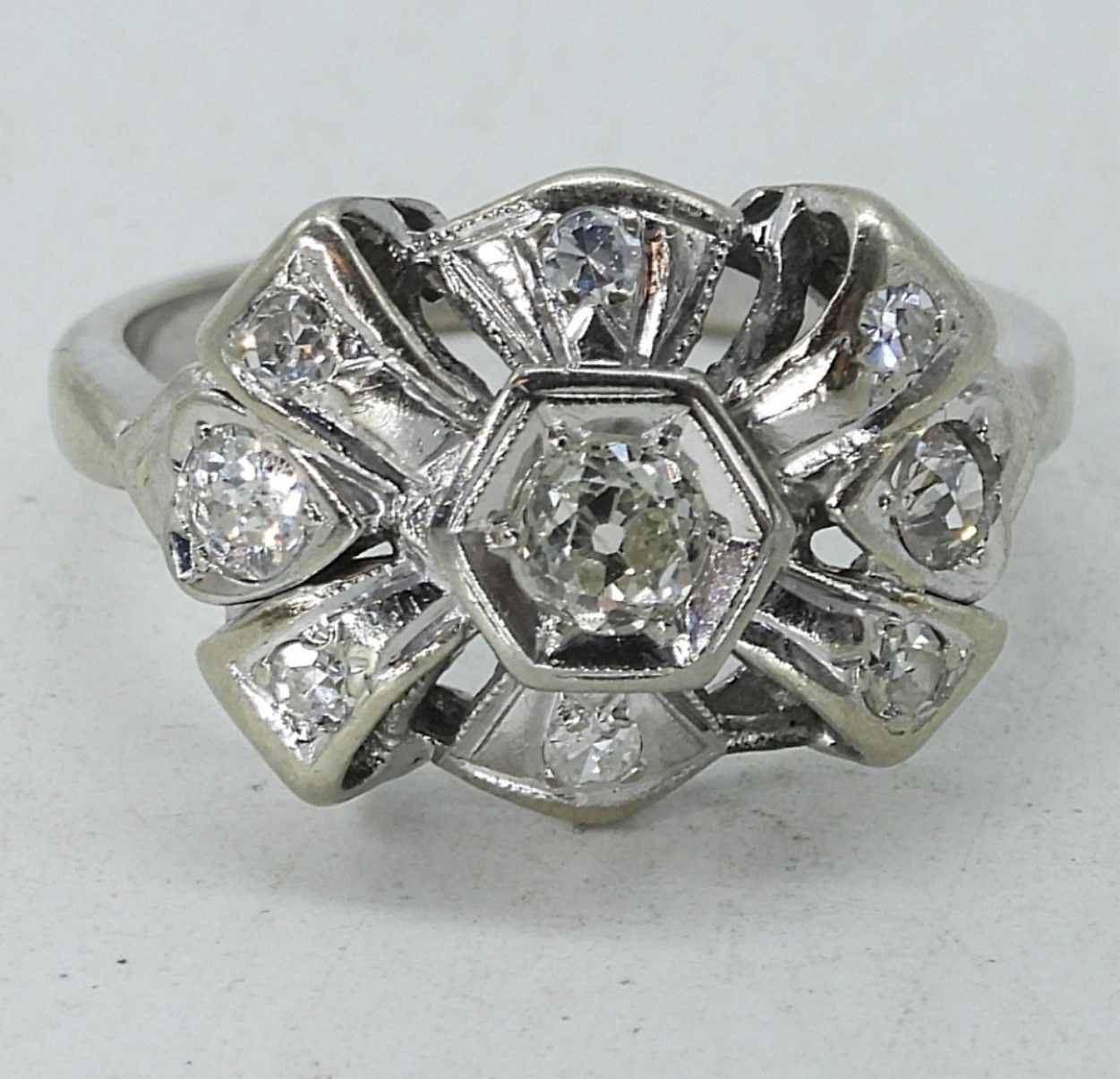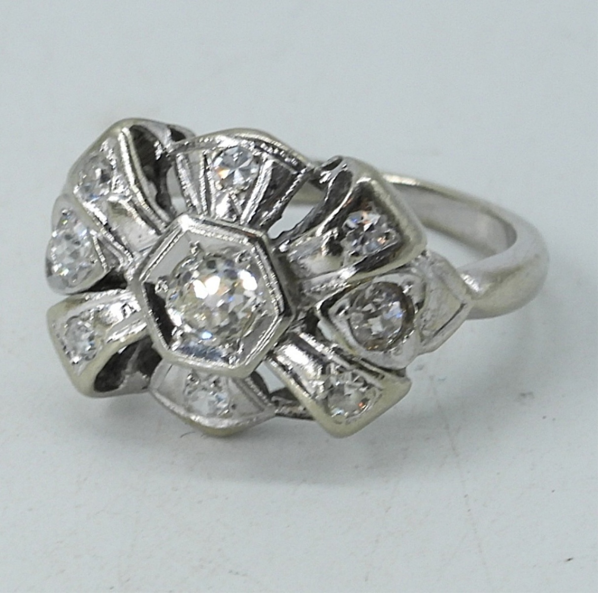 Diamond (.40 tw) on 14k White Gold. Ring is size 5. (2.1 dwt w/ stones)
