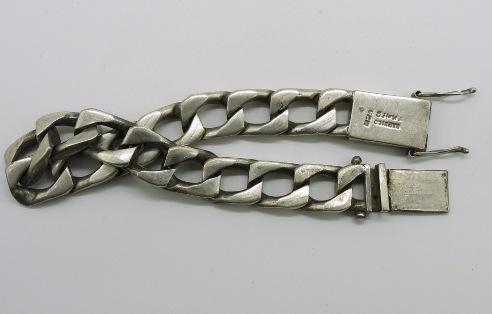 Taxco, marked “Mexico TM-182 925”. 9″ long. Very thick and heavy! (49 dwt)