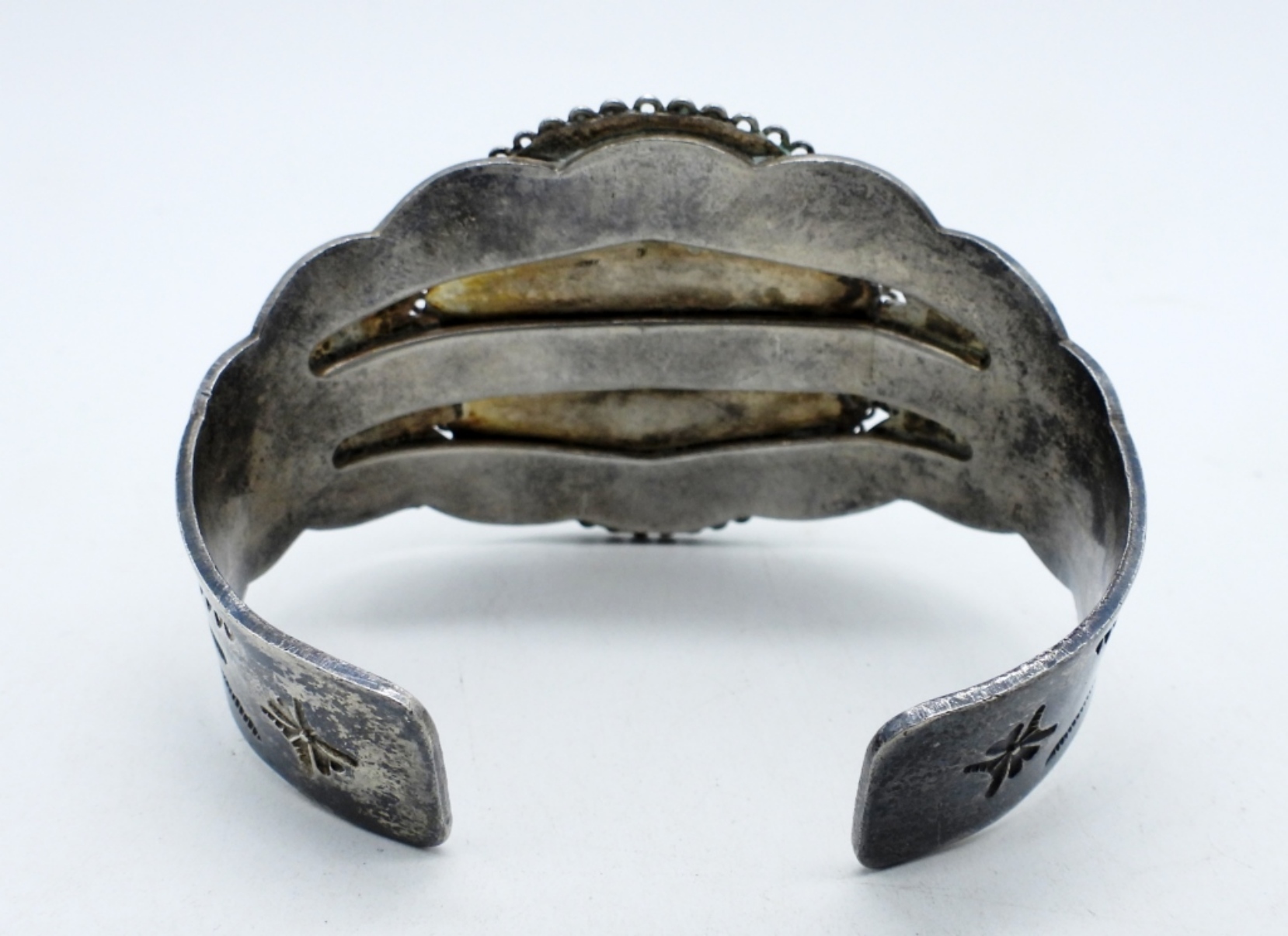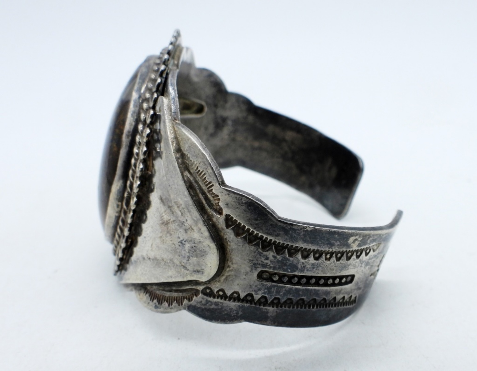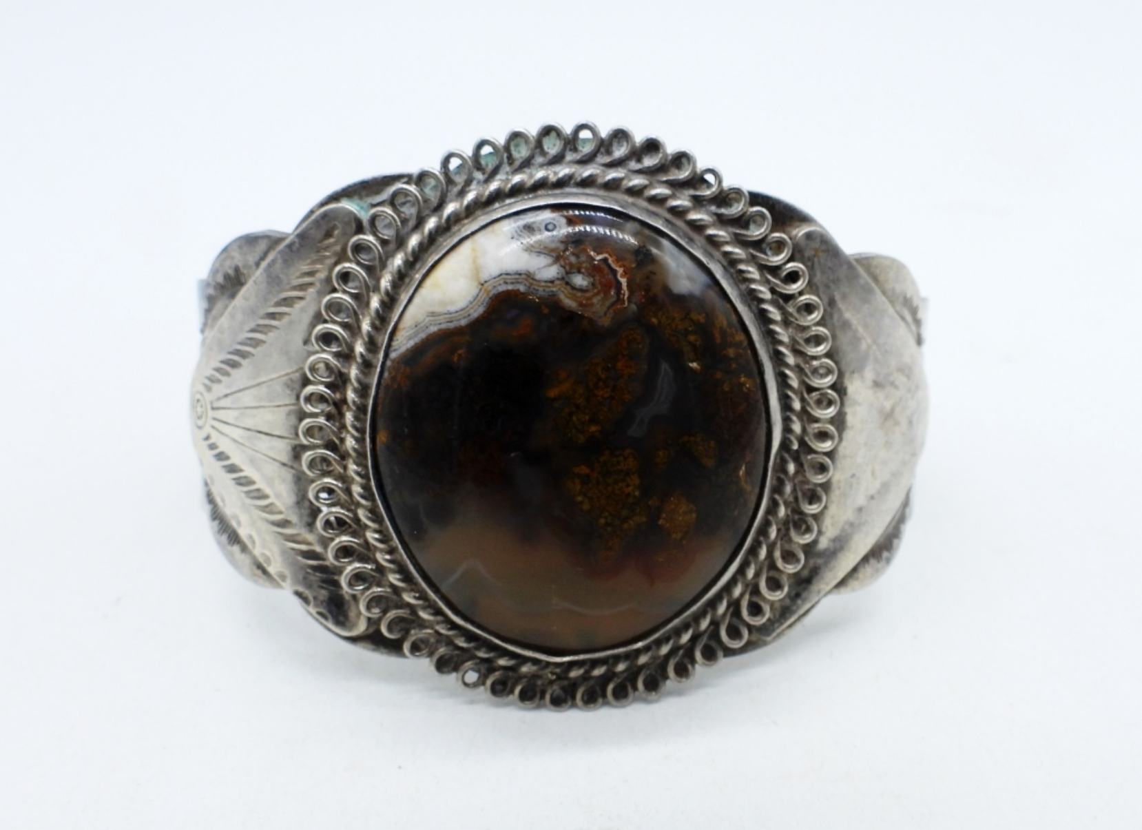 Heavy sterling agate cuff bracelet. 7″. (42 dwt)