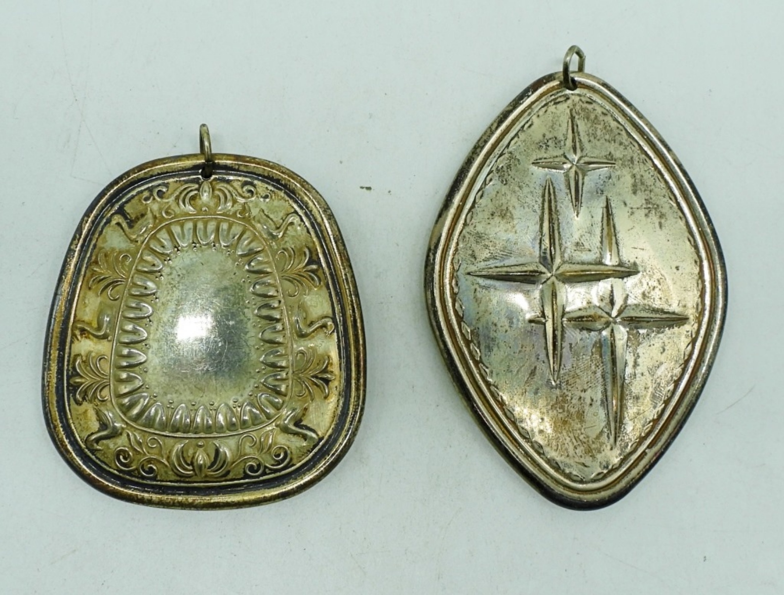 Two Sterling Towle Ornaments – 1974 & 1976. 2.5″ & 3.5″ (30 dwt)