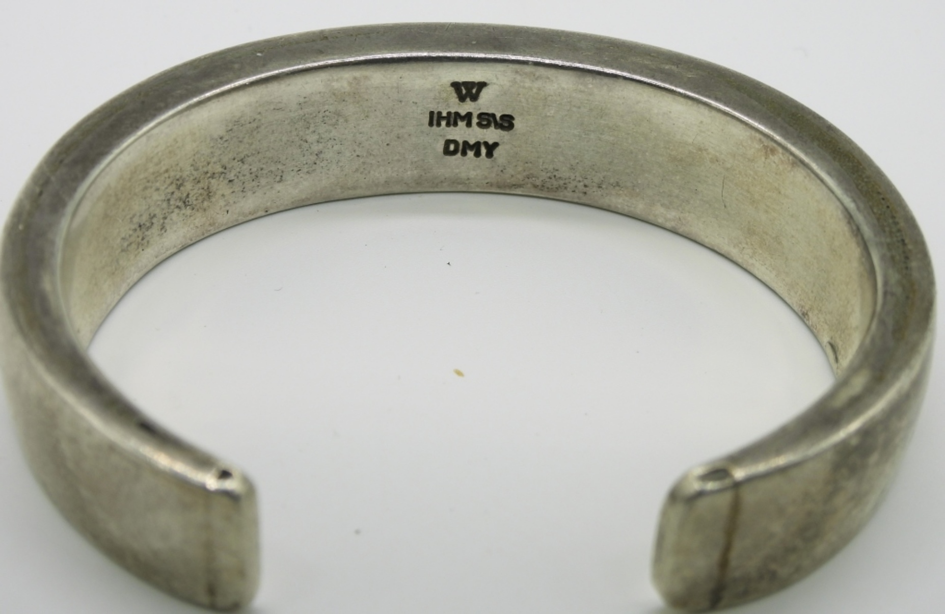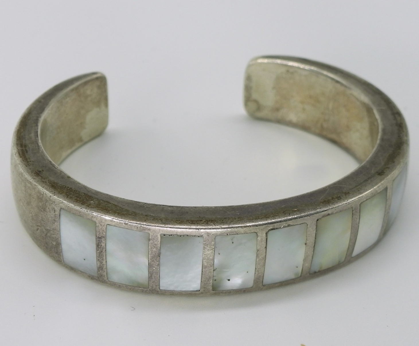 Mother of pearl inlay, thick sterling cuff bracelet. (34.5 dwt)