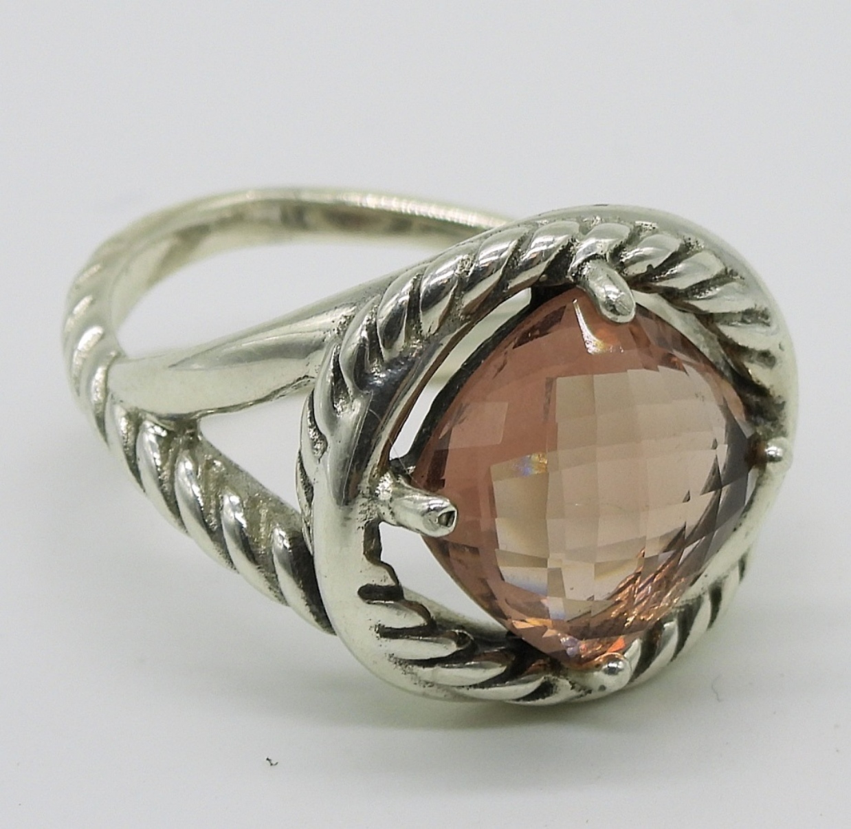 Sterling David Yurman Morganite Ring. Size 9.5 (5.9 dwt)