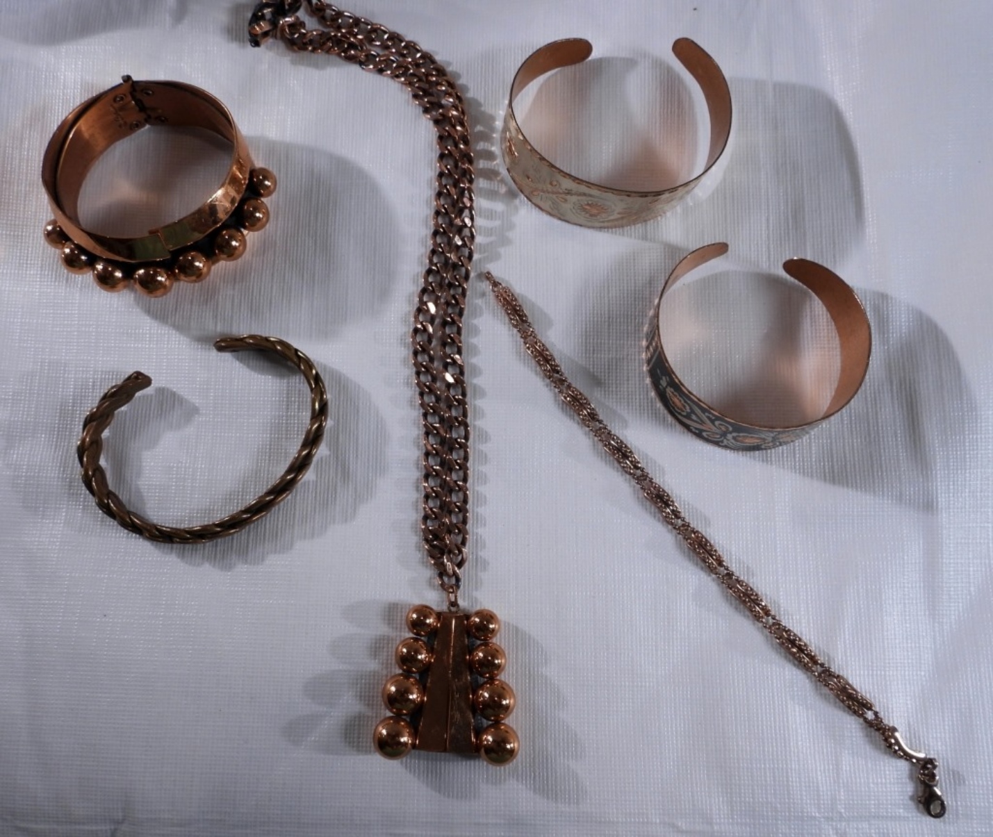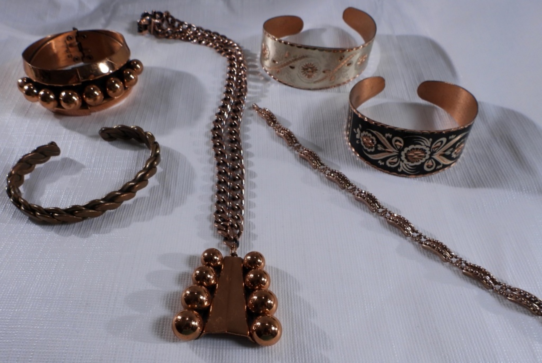 All Copper in Color (4) Cuff Bracelets (1) Clasp Bracelet