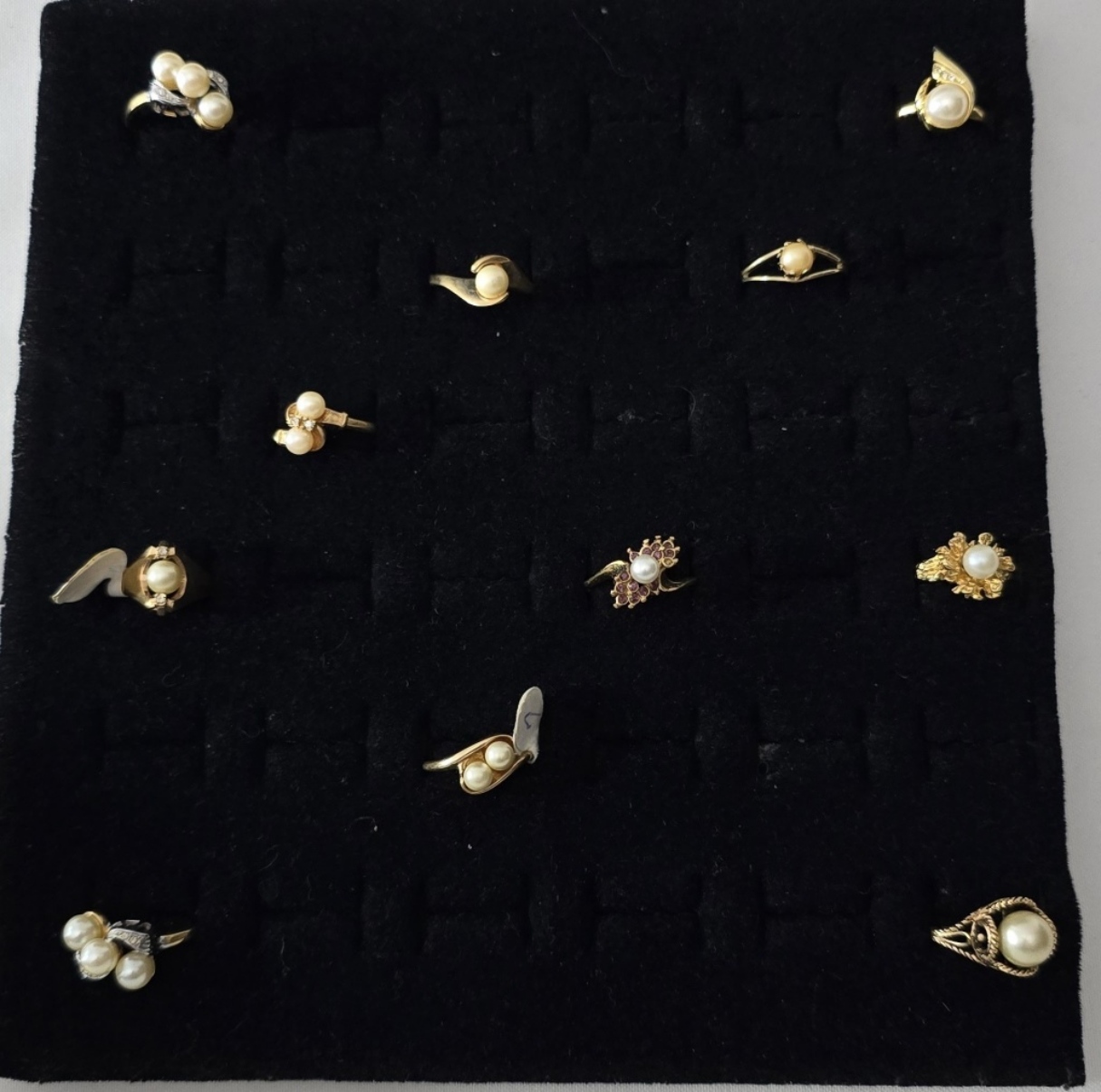 Ring sizes range from 7-10, All are gold-tone, different styles.