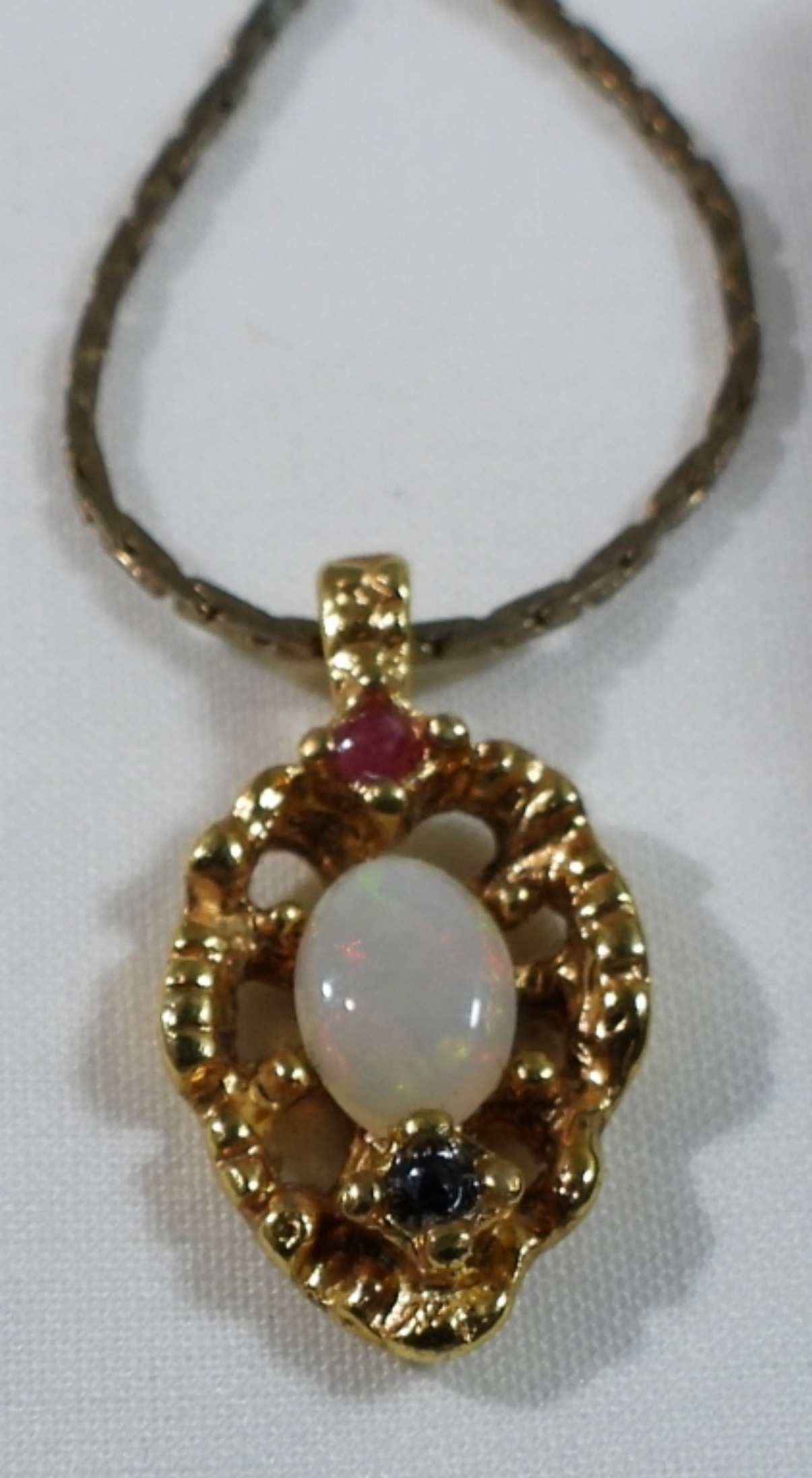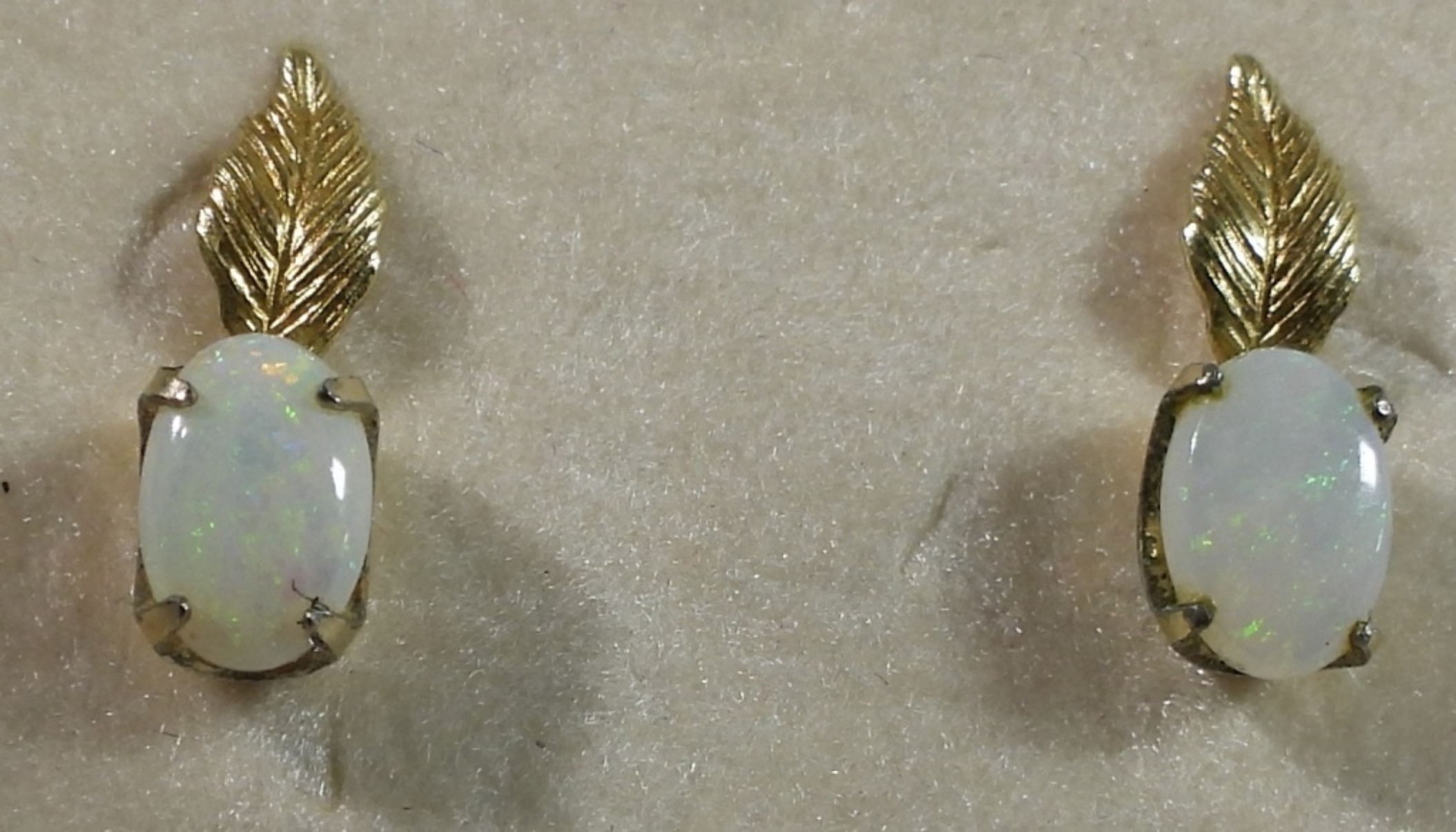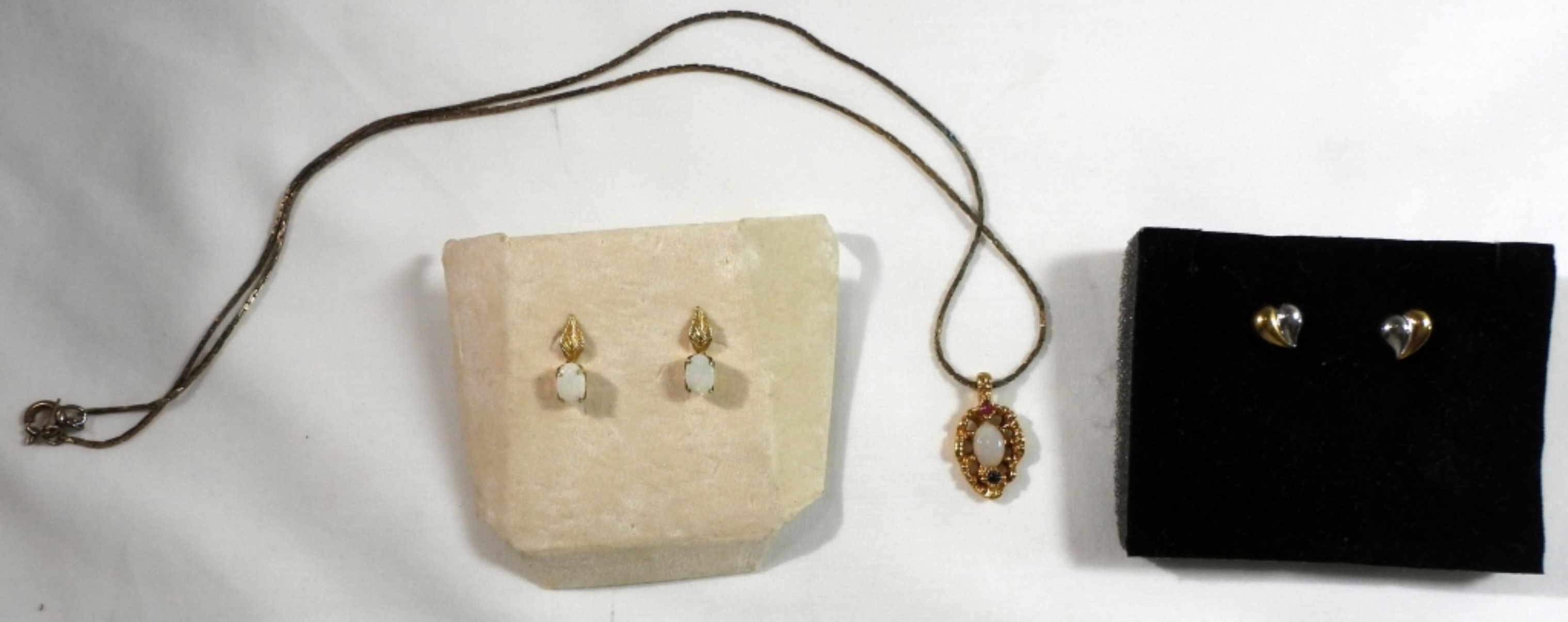 One pair of opal earrings and a necklace. A pair of heart earrings