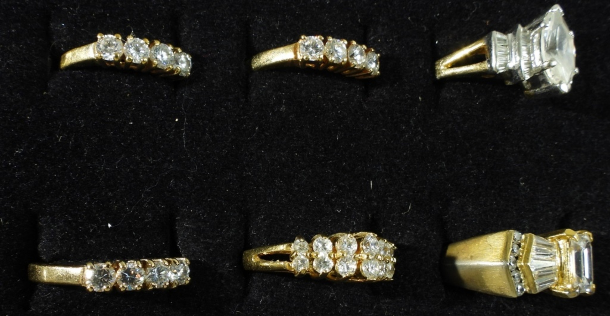 Stones untested Sizes 5.5-9.5 Gold tone and diamond clusters