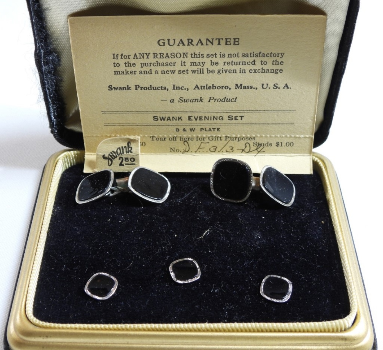 Like new in the box. Silver tone and onyx color stones
