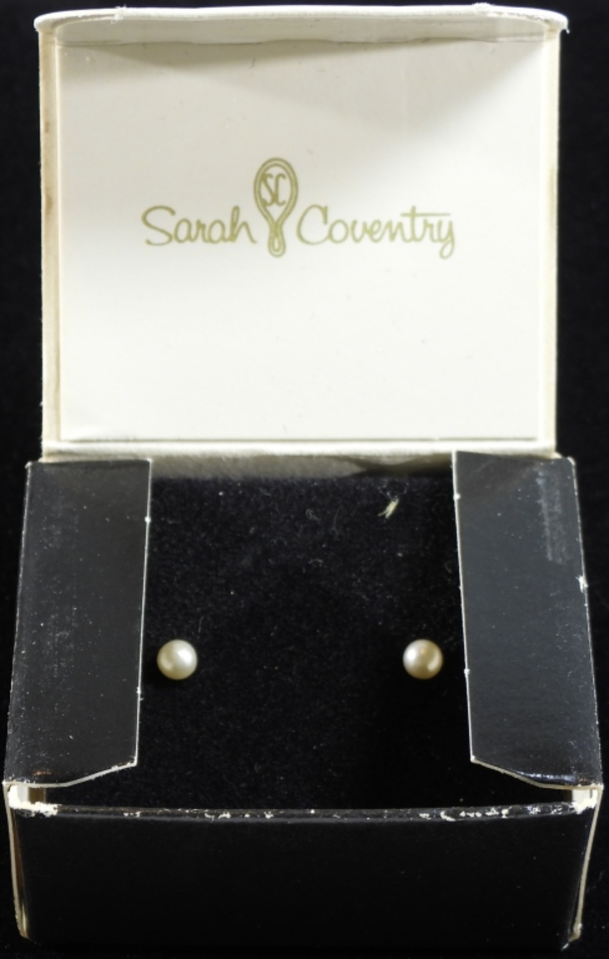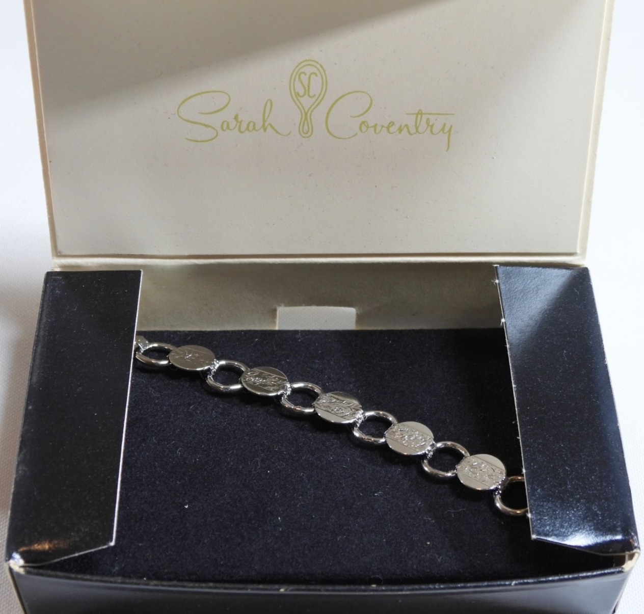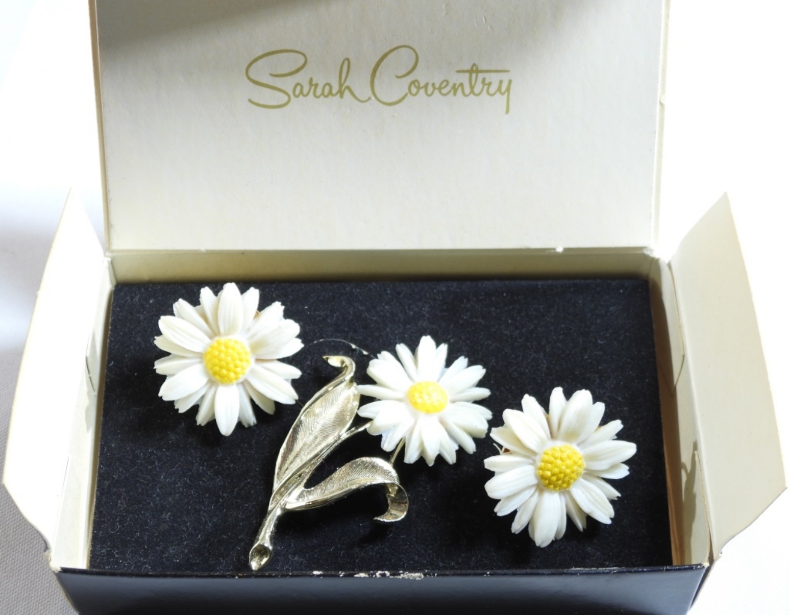 All in great shape, still in boxes. See photos for details. (1) Pair Pearl style stud earrings. (1) silver tone bracelet. (1) Daisy brooch with matching clip-on earrings. Lage silver tone bracelet with colorful gems
