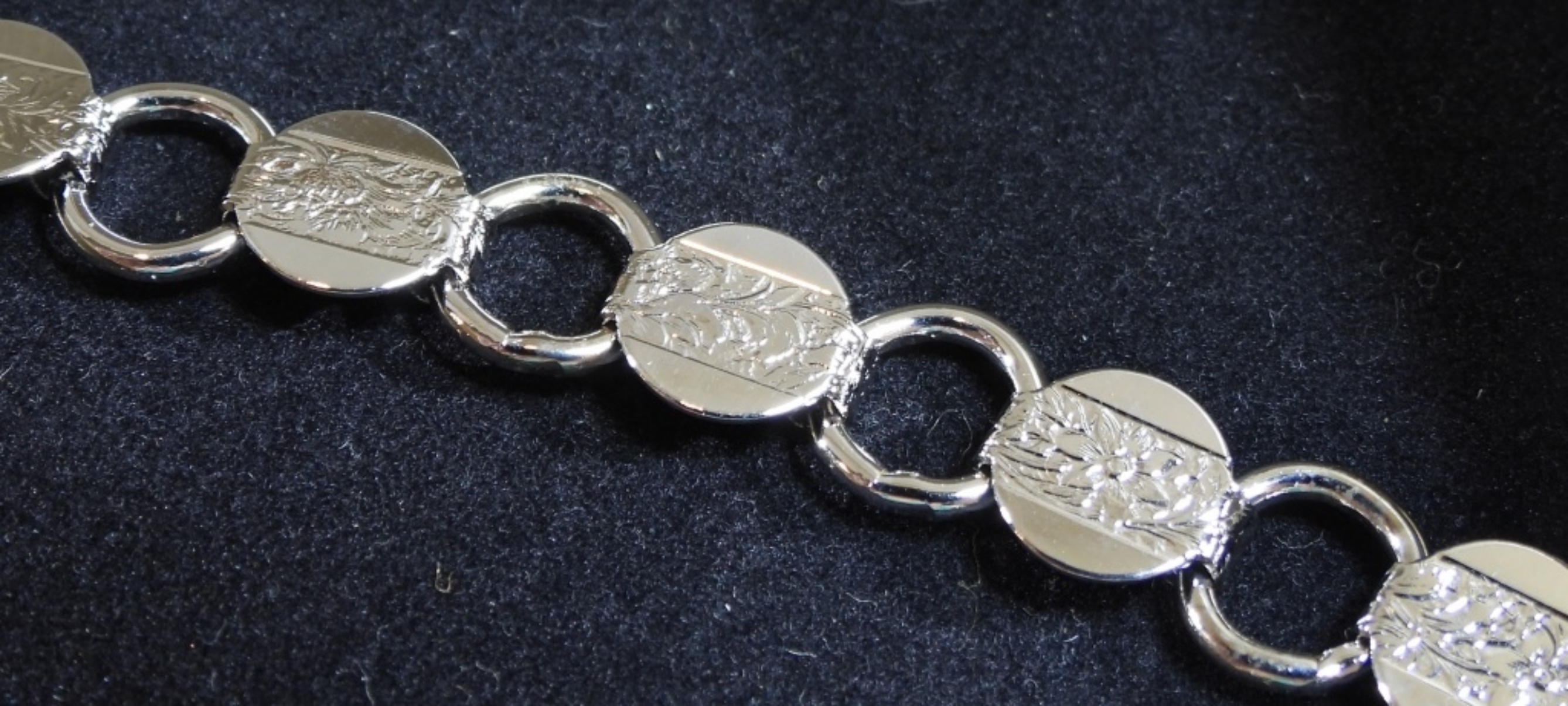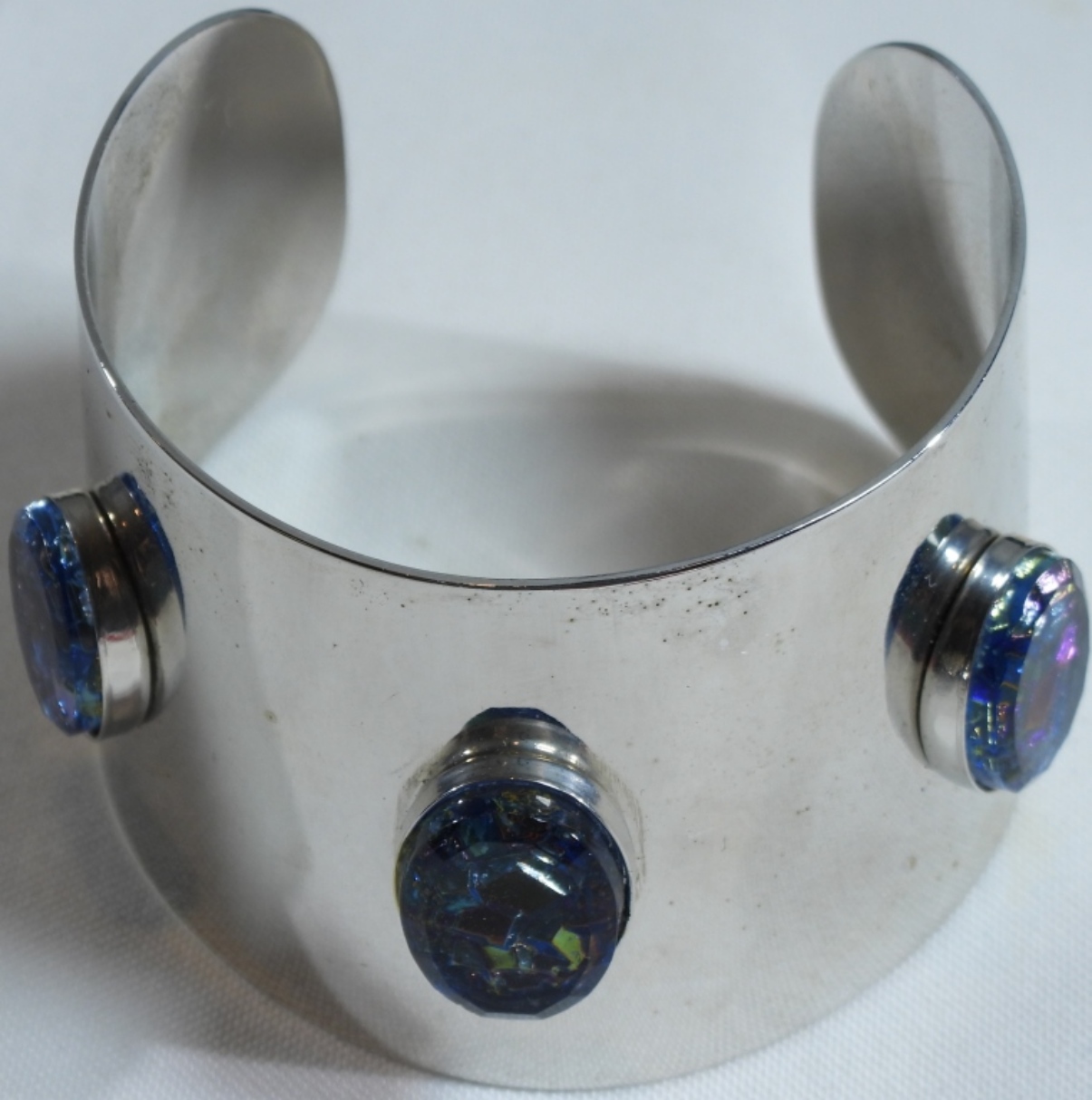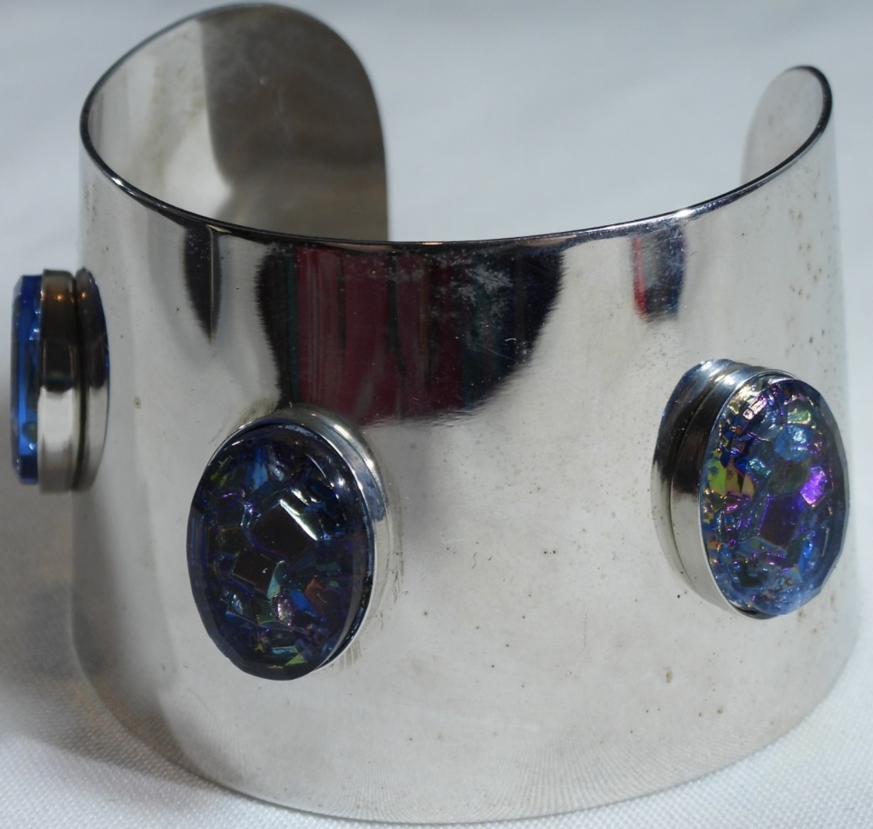 All in great shape, still in boxes. See photos for details. (1) Pair Pearl style stud earrings. (1) silver tone bracelet. (1) Daisy brooch with matching clip-on earrings. Lage silver tone bracelet with colorful gems