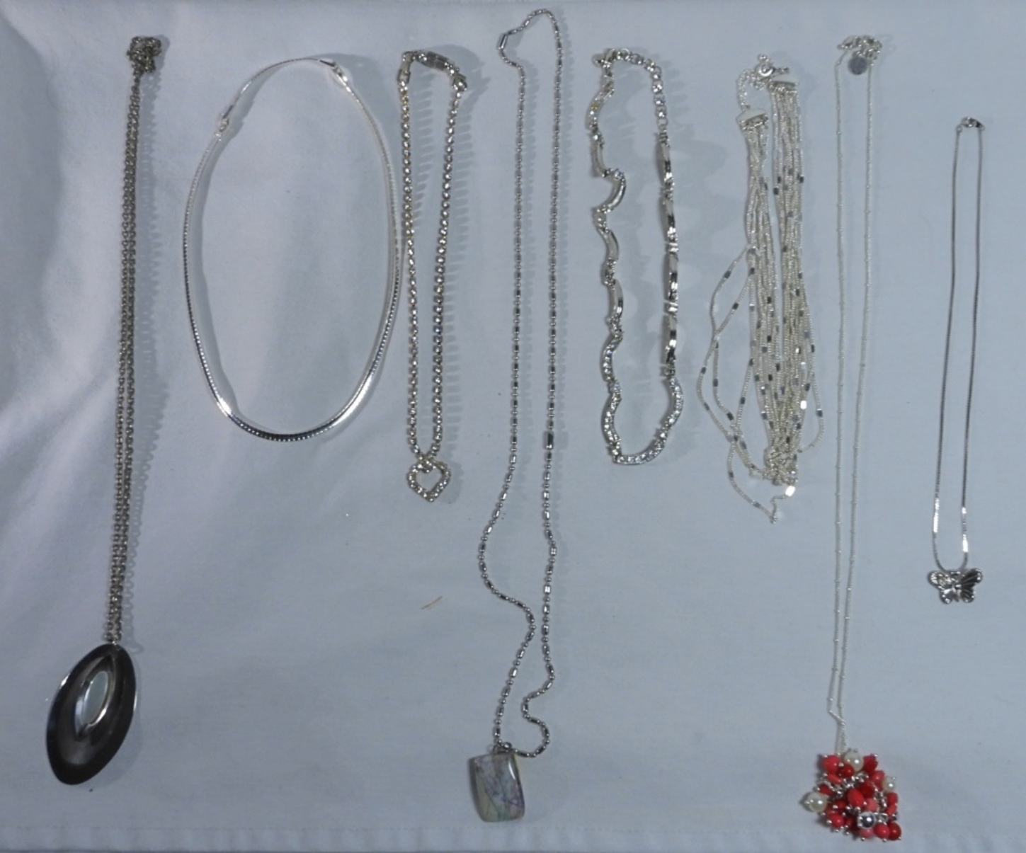All sliver tone, From simple chain to necklaces with charms, lengths 18″ to 30″
