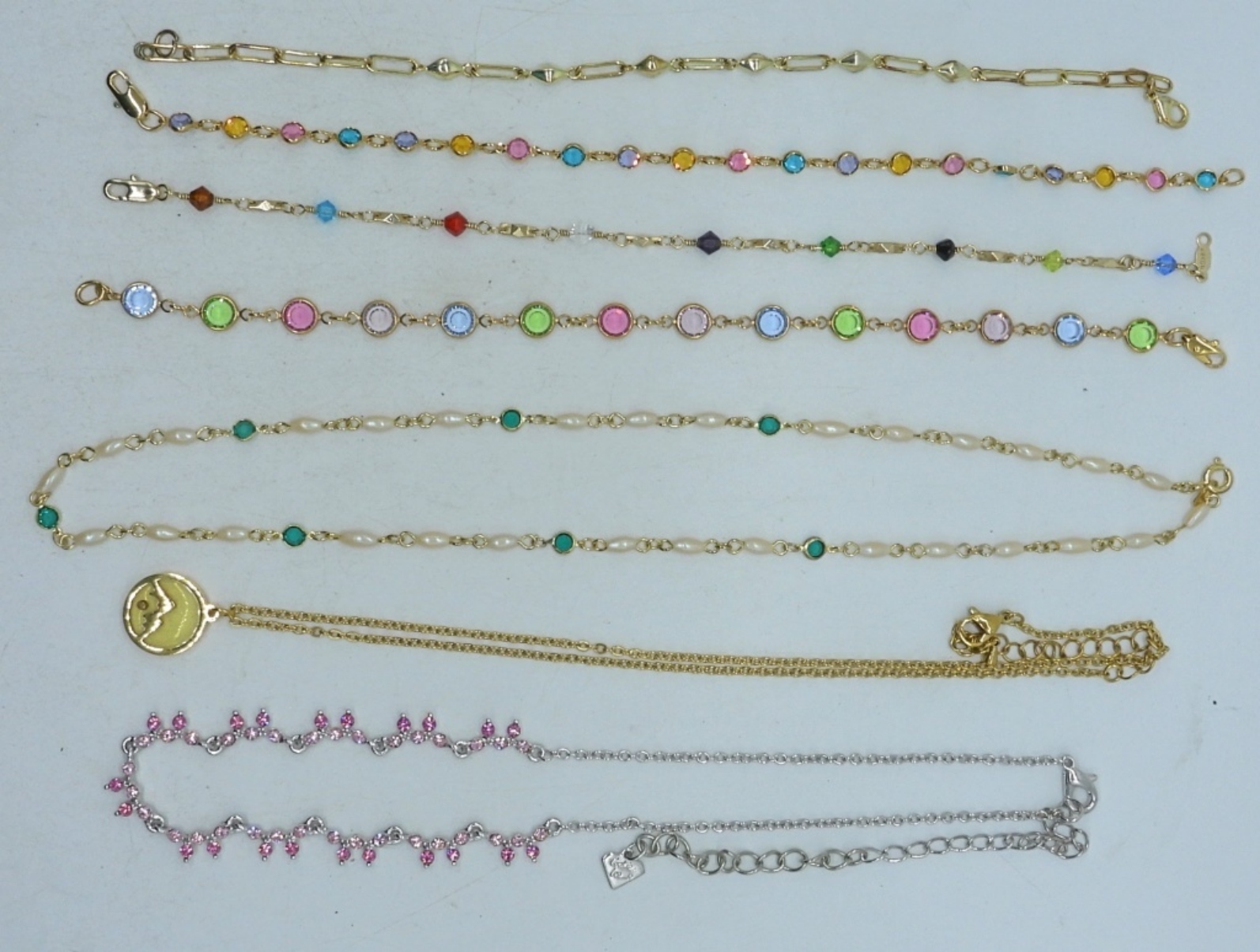 3 dainty necklaces, all about 18″, 4 pretty 8 1/2″ bracelets