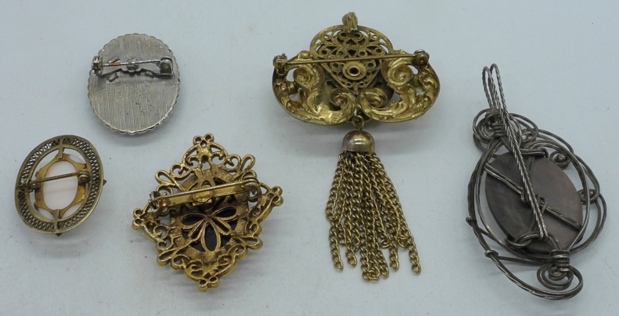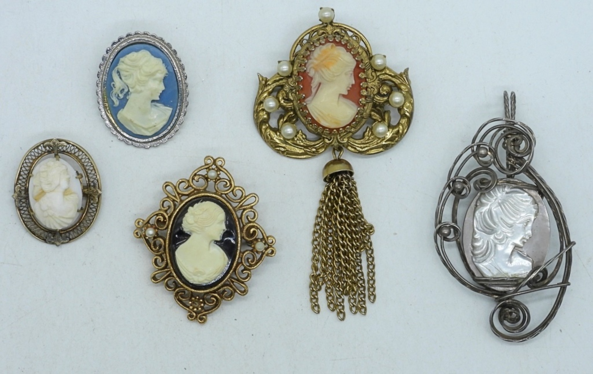 4 cameo pins and a pendant