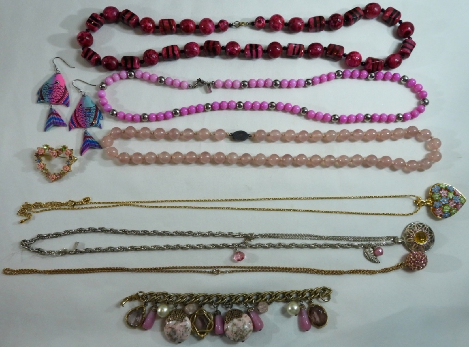 Get you pink on! (6) Necklaces (1) bracelet (1) Pair of earrings (1) brooch