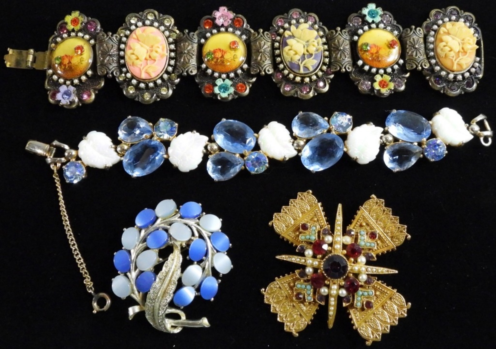 (1) Set blue and white beads. (1) gold-tone and vibrant gems