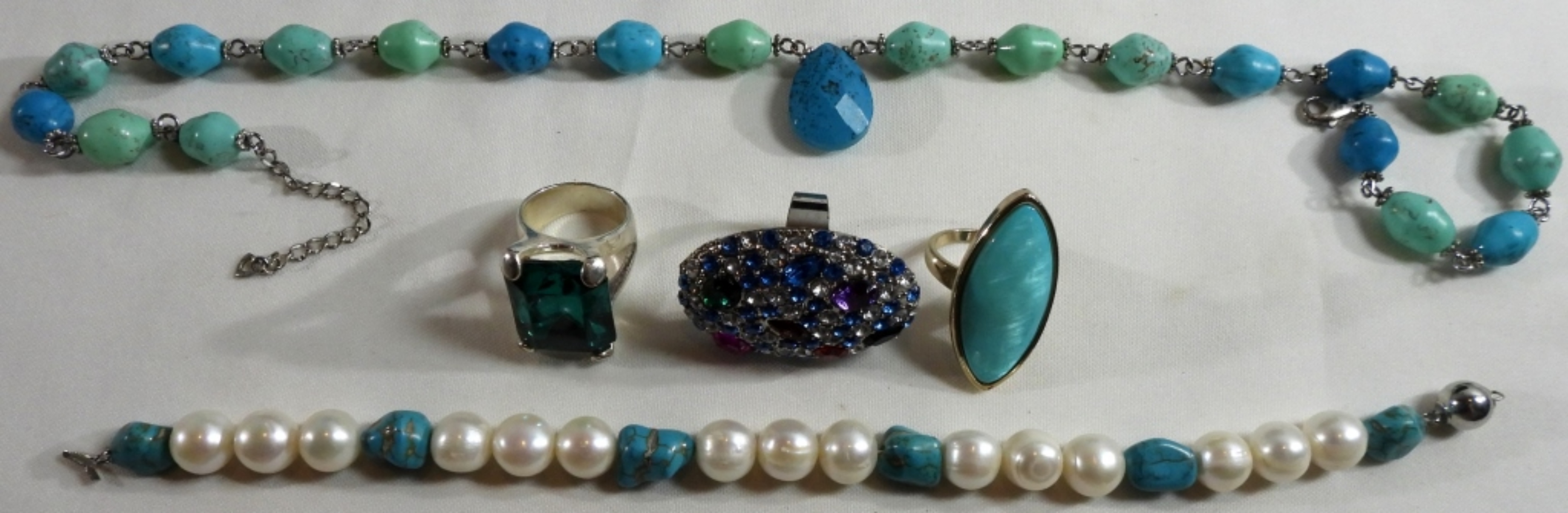 Sizes 6.5-9.75 Bracelet and necklace Faux pearls and turquoise