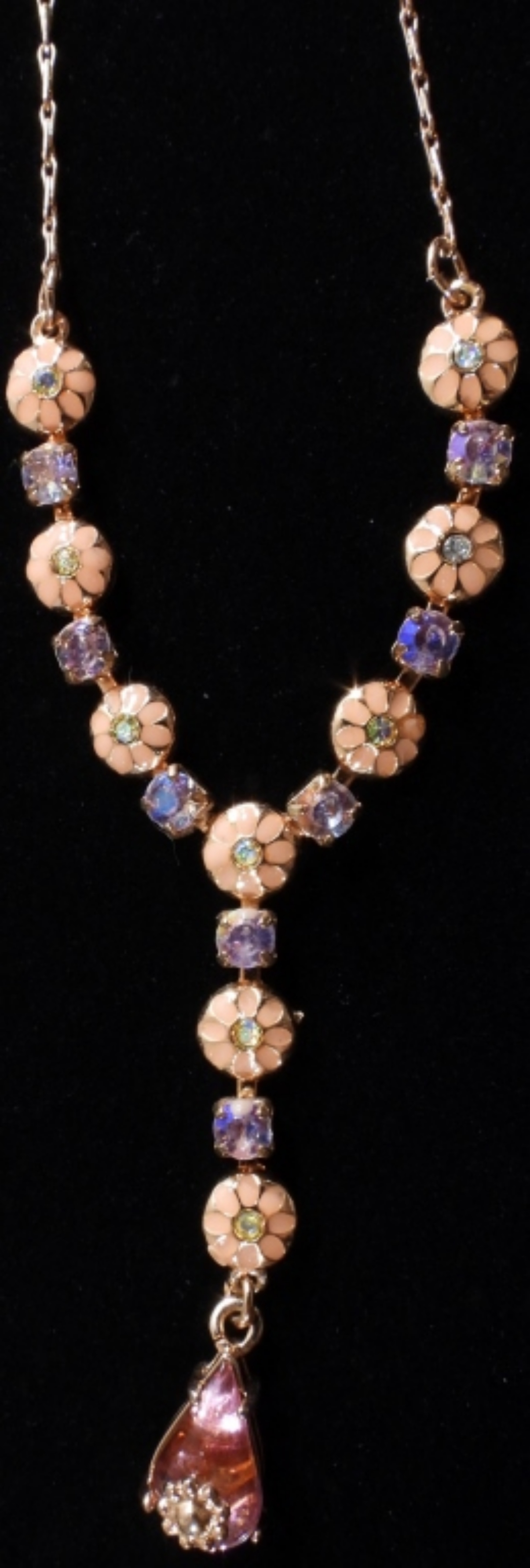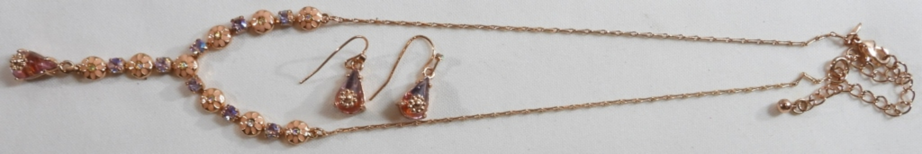 Rose gold tone pink/ peach flowers with purple stones