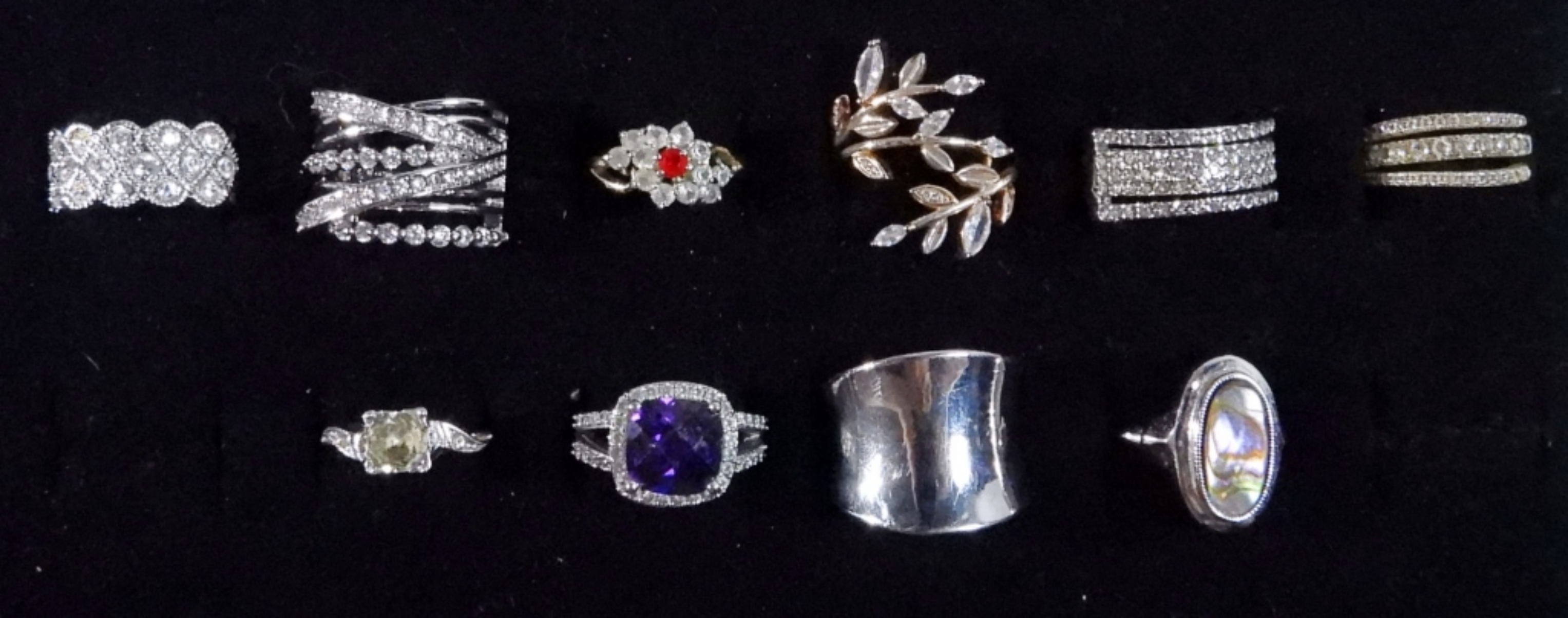 10 silver-tone rings in many sizes ( 5, 6, 61/2, 7, 8,8 1/2).