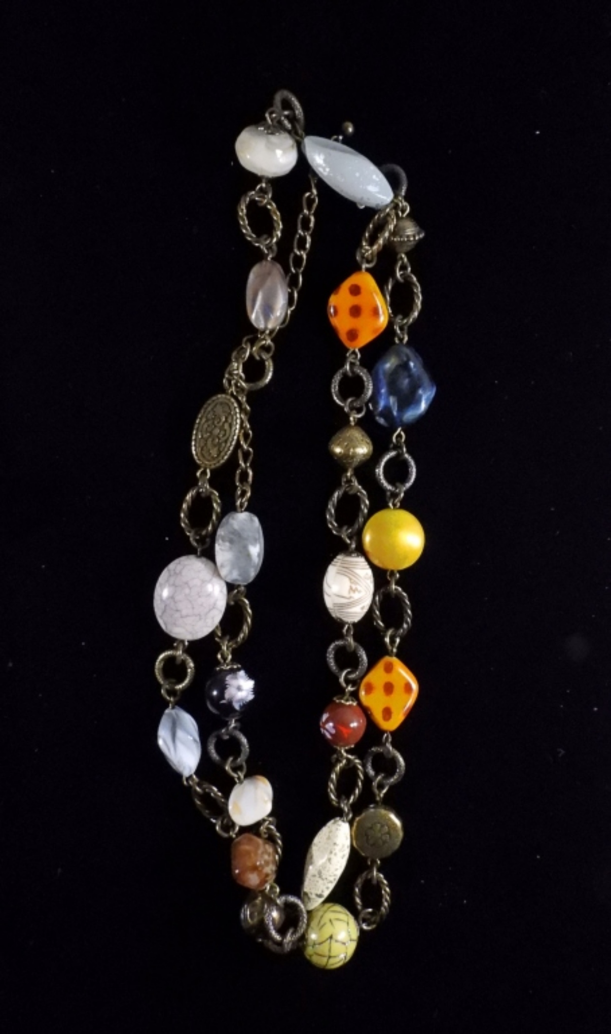 10 colorful beaded necklaces, all unique and different.
