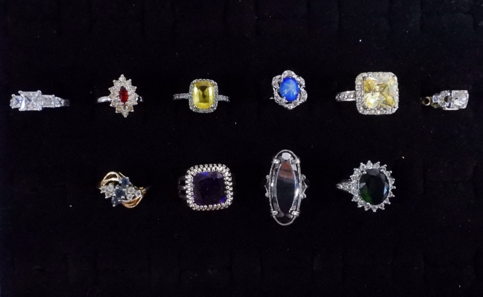 10 women’s rings in a variety of styles and sizes, sizes 5,7, 7 1/2, 8, 9.