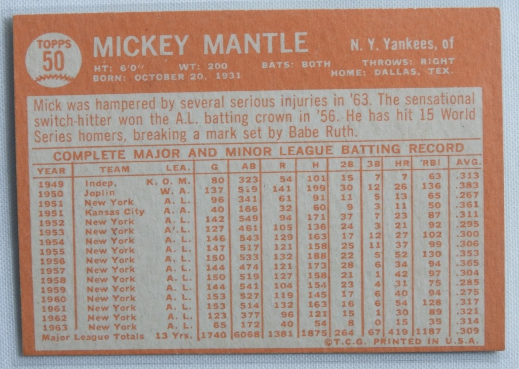 TOPPS Mickey Mantle #50, the card is off-center.