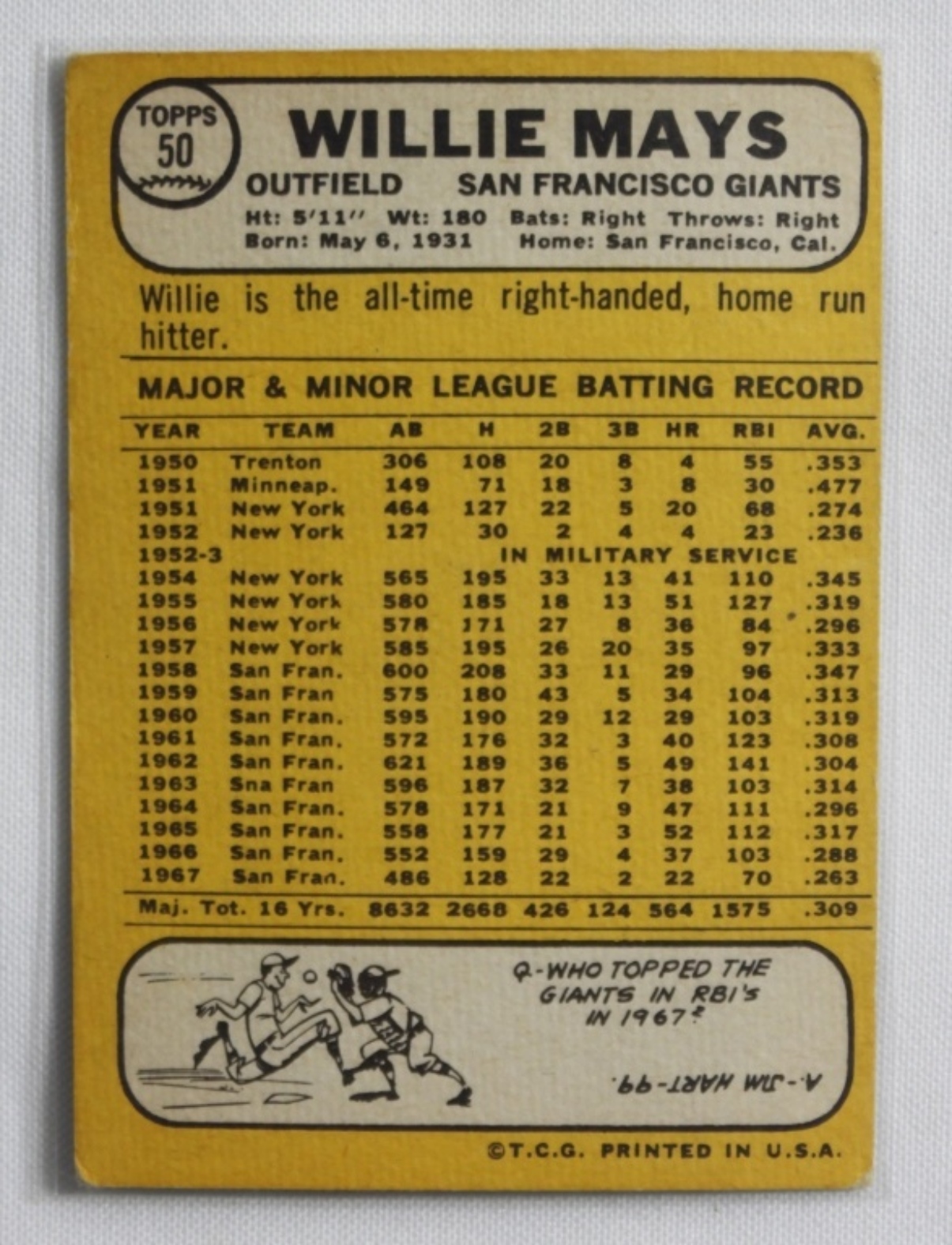 TOPPS Willie Mays #50, the card off center.