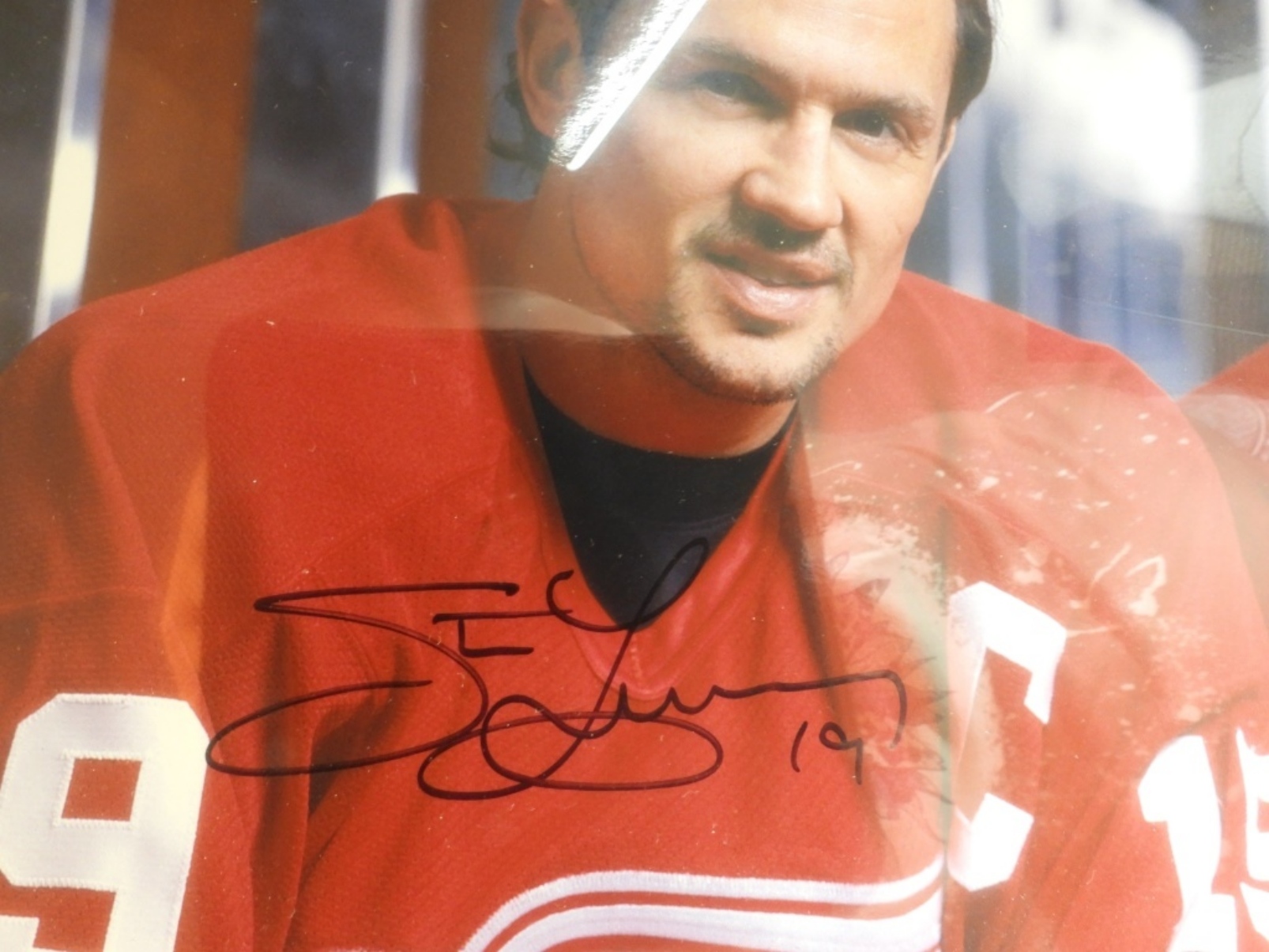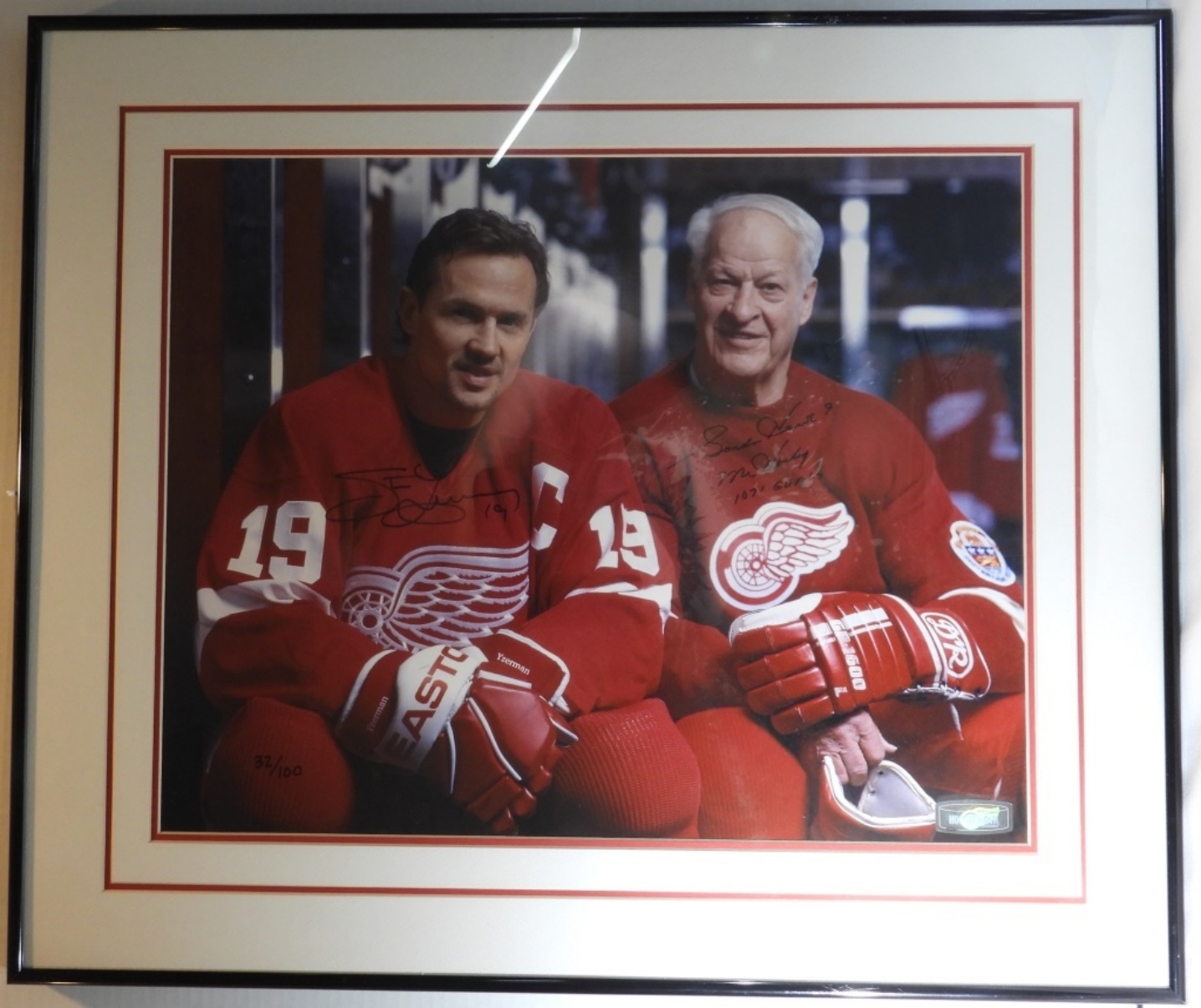 This photo is of Steve Yzerman and Gordie Howe. Both signed. Comes with an unverified COA by Hockey Town