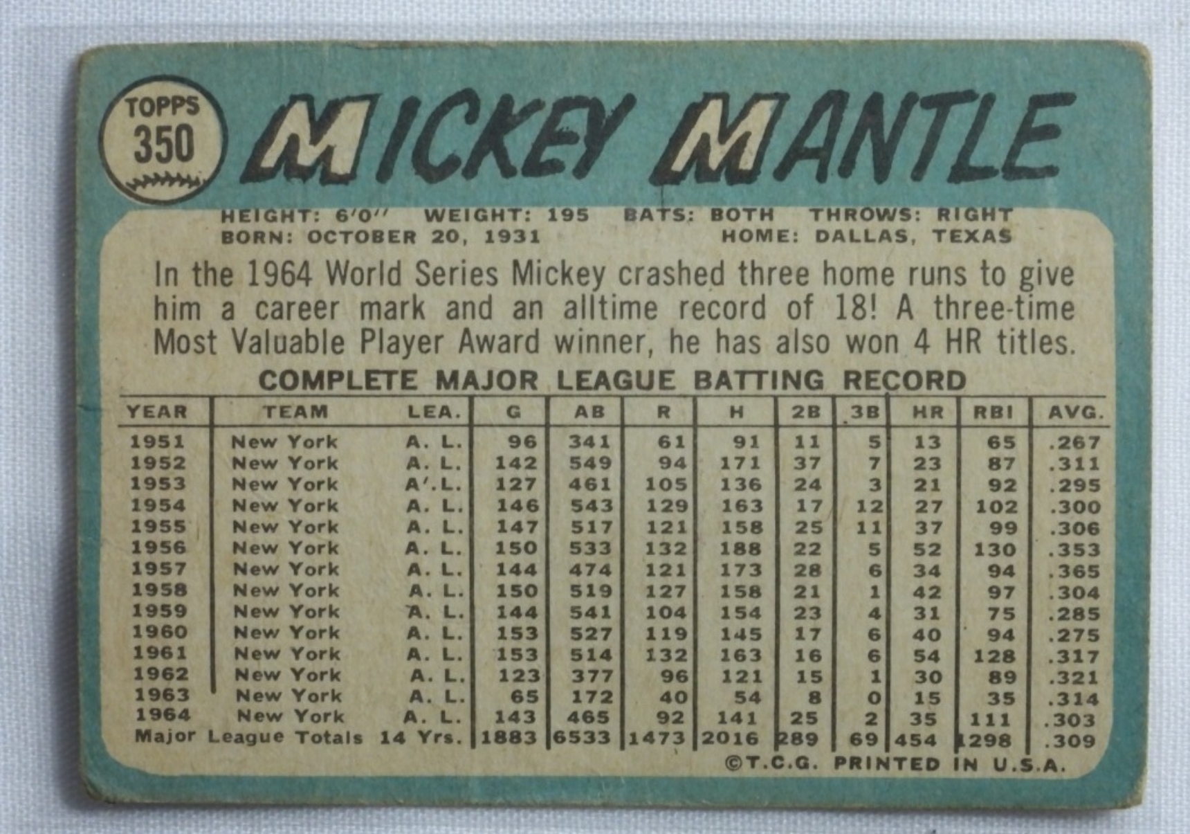 TOPPS Mickey Mantle #350 G