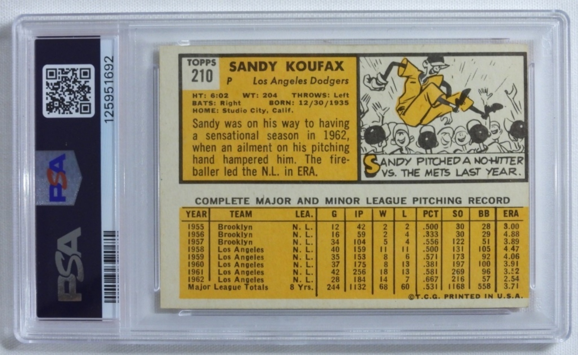 PSA 1963 TOPPS Sandy Koufax #210 VG-EX 4 (125951692)