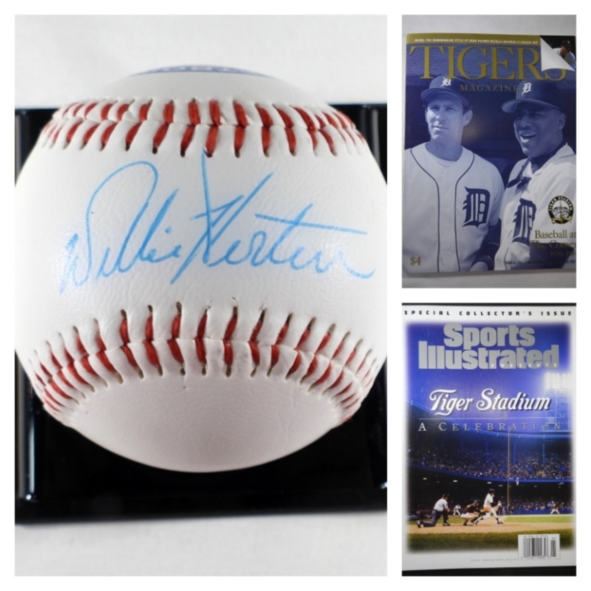 2 Tigers theme magazines &1 signed baseball Willie Horton no COA