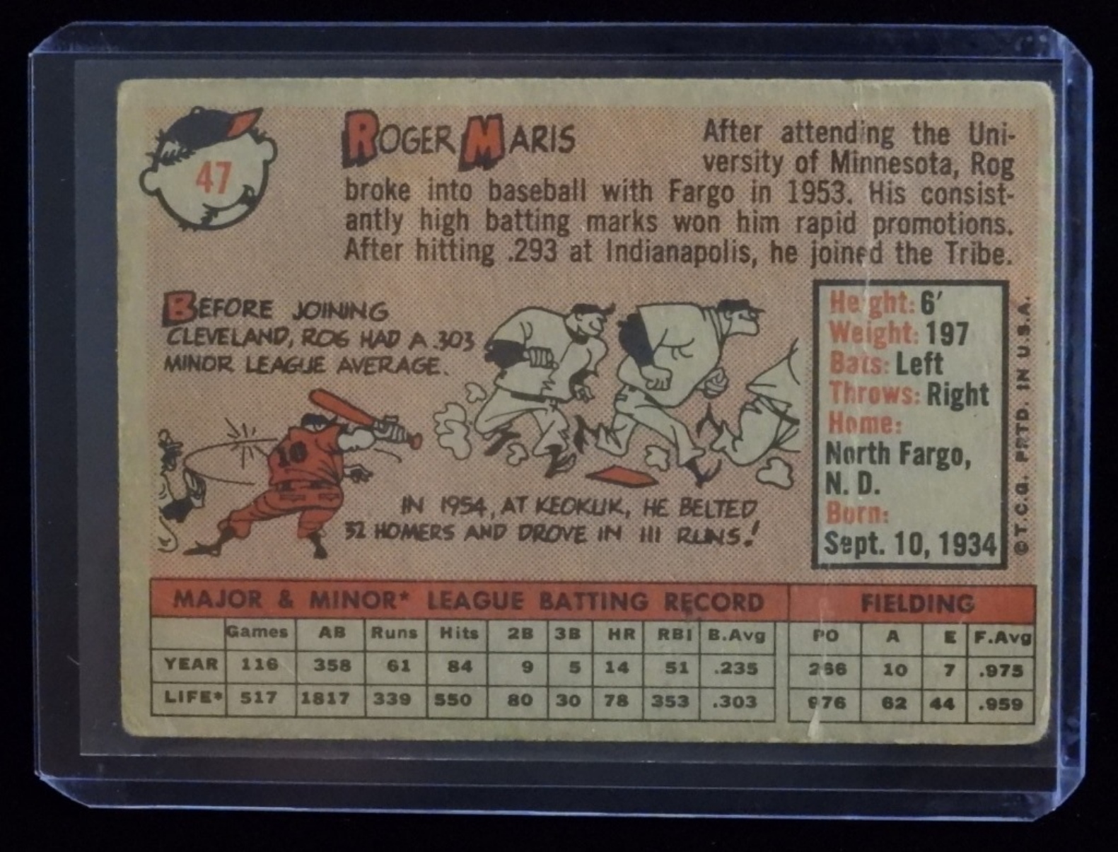 Roger Maris TOPPS #47 VG, rounded corners, creasing.