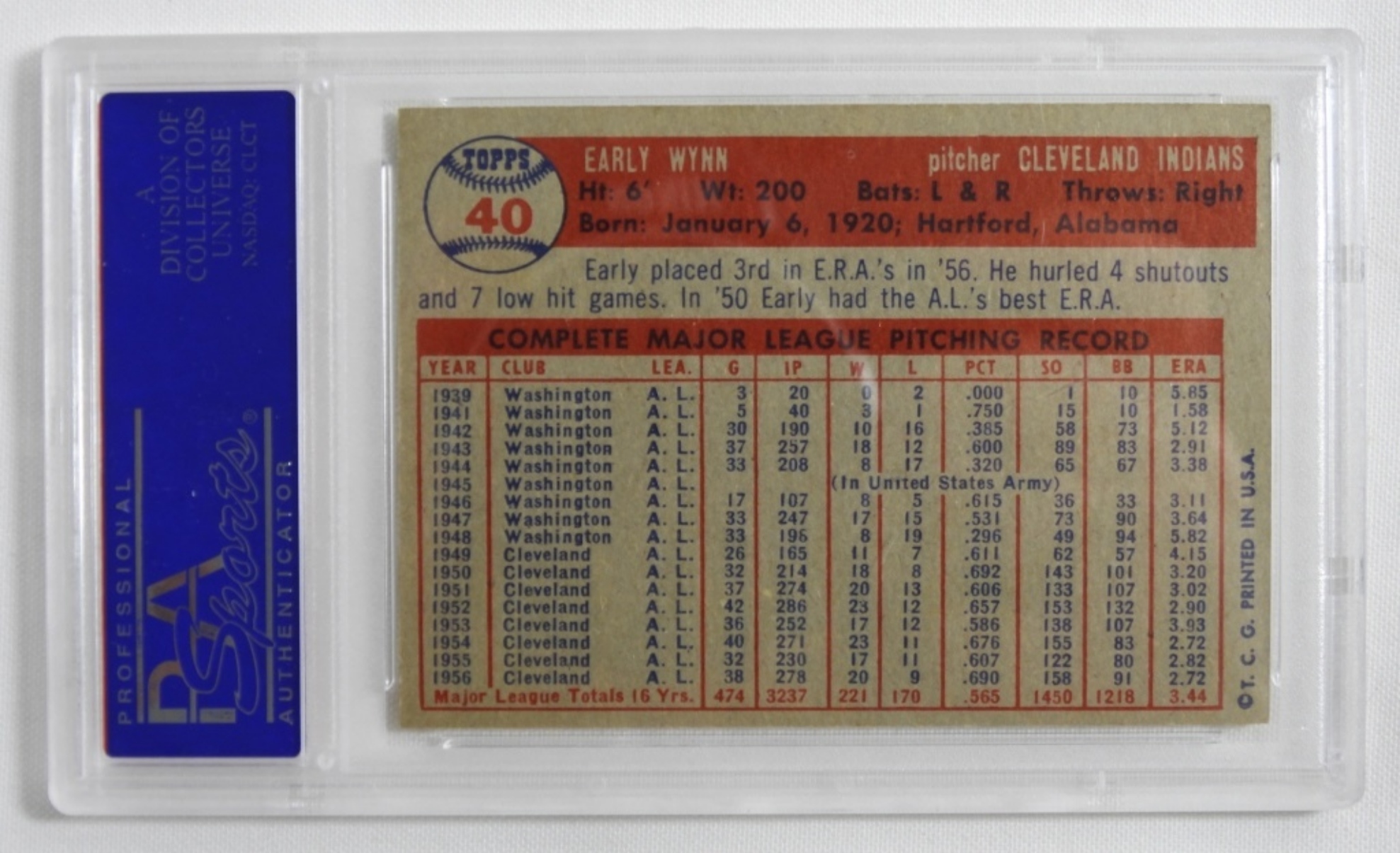 PSA 1957 TOPPS Early Wynn #40 NM 7 (31236178)