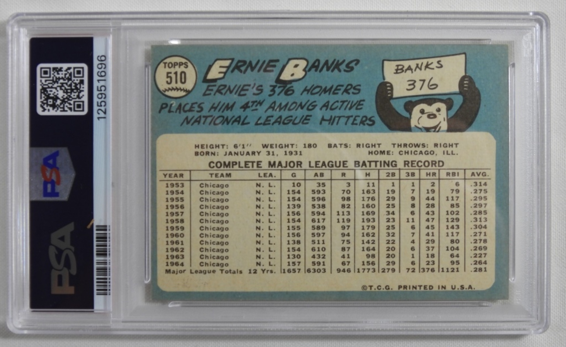 PSA TOPPS Ernie Banks #510 EX 5(MC) (125951696)