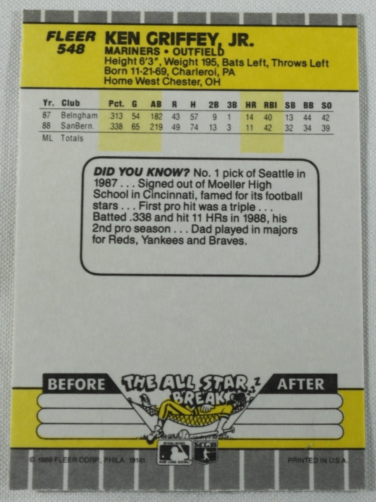 1989 Rookie Card # 548 Fair Condition