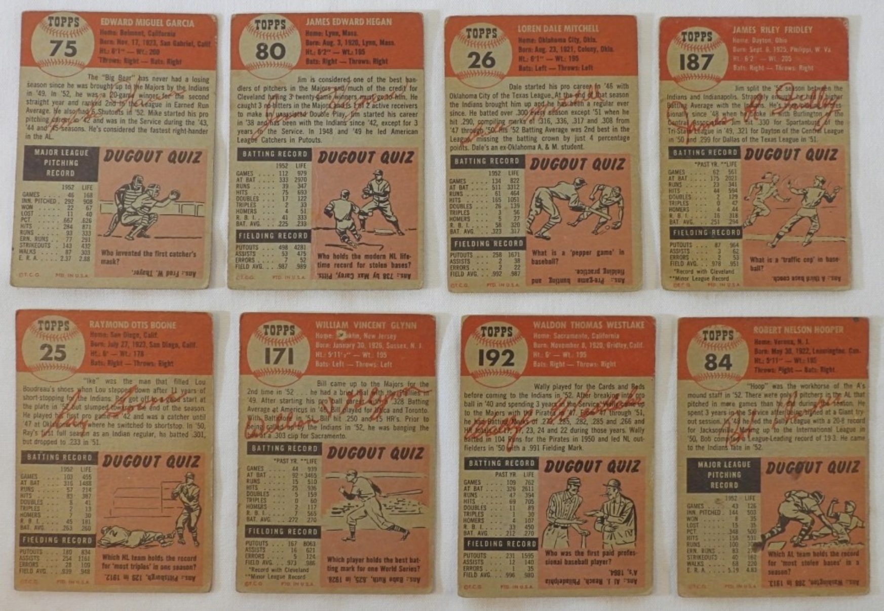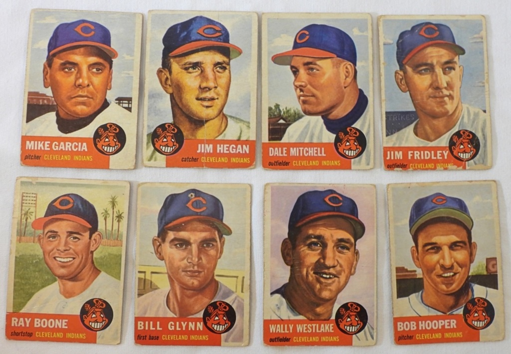 7 cards of the 1953 Cleveland Indians team, condition is good