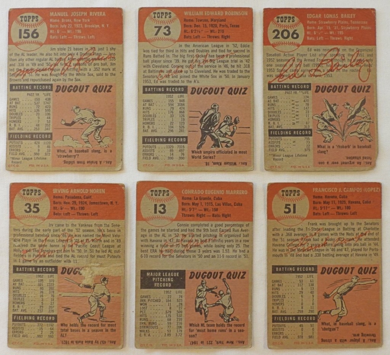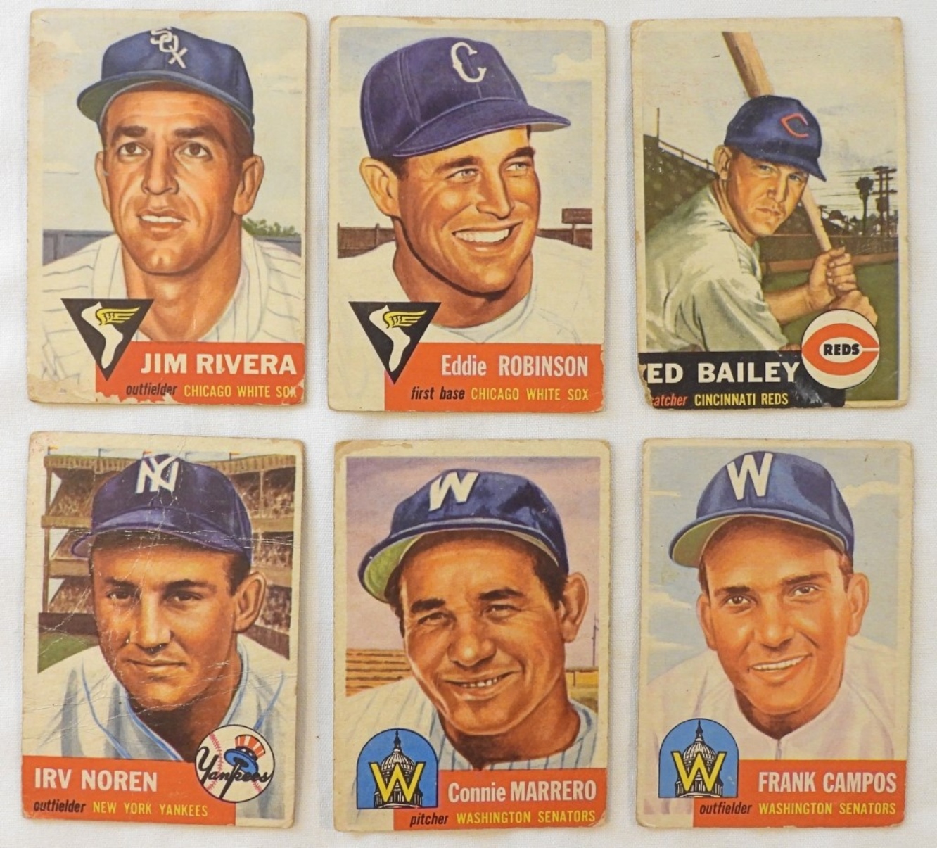 2 Washington Senators, 2 Chicago White Sox, 1 Cincinnati Reds, and 1 New York Yankee, good condition