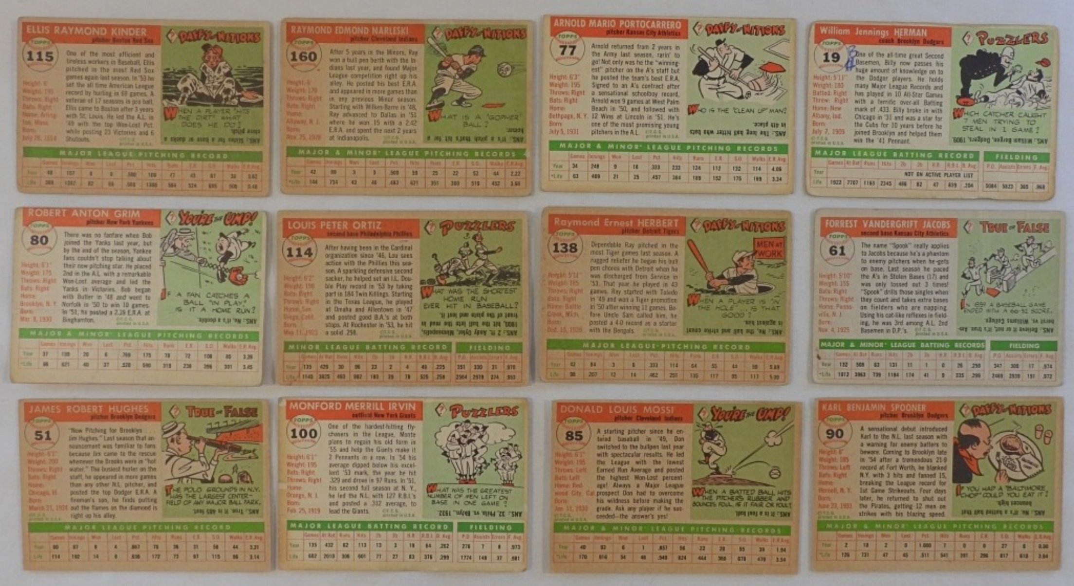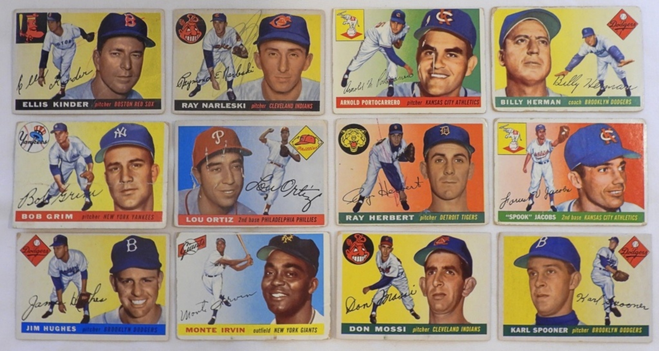 12 cards from 1955 variety of teams, including the Dodgers, Red Sox, and more, good condition