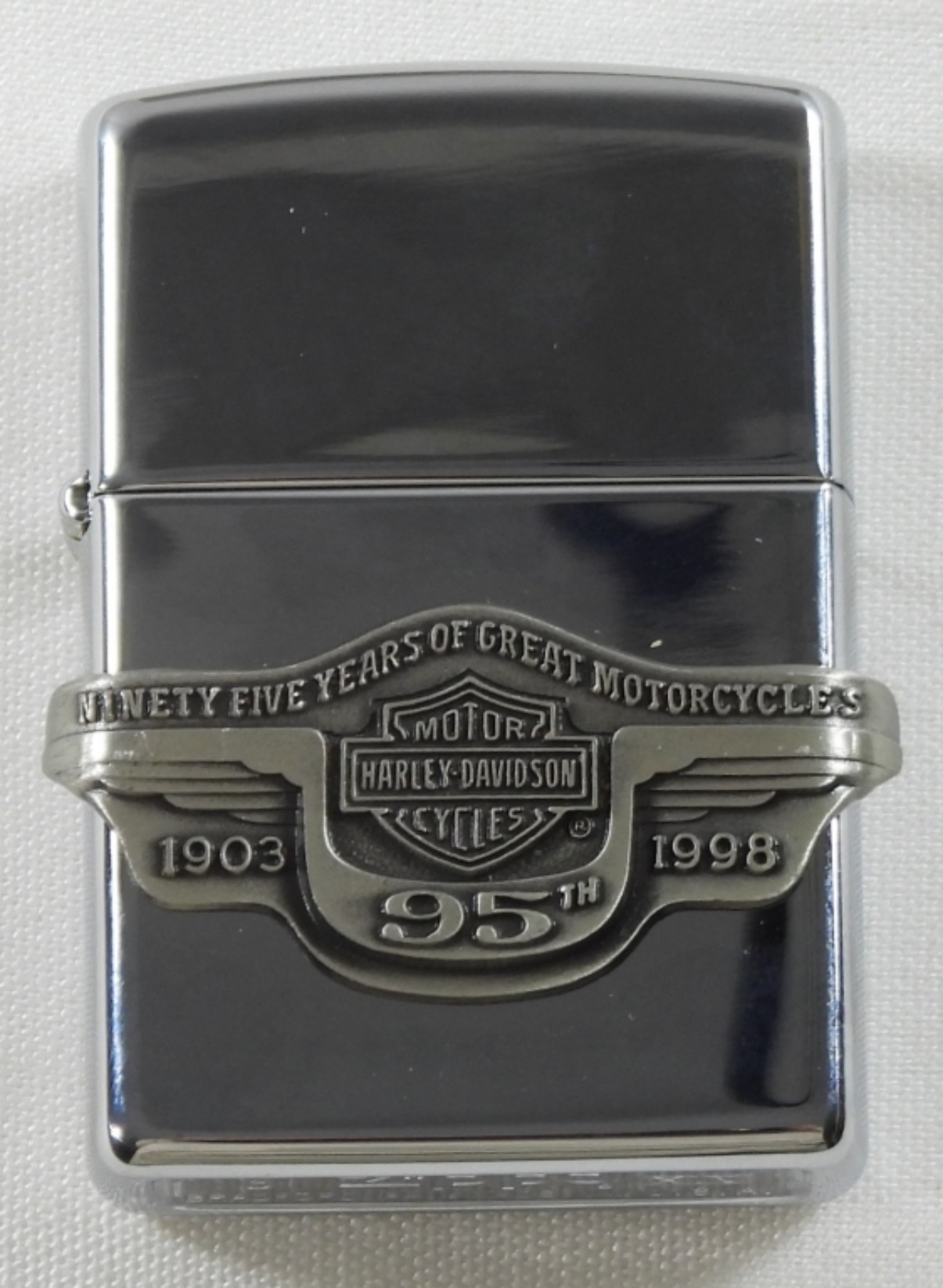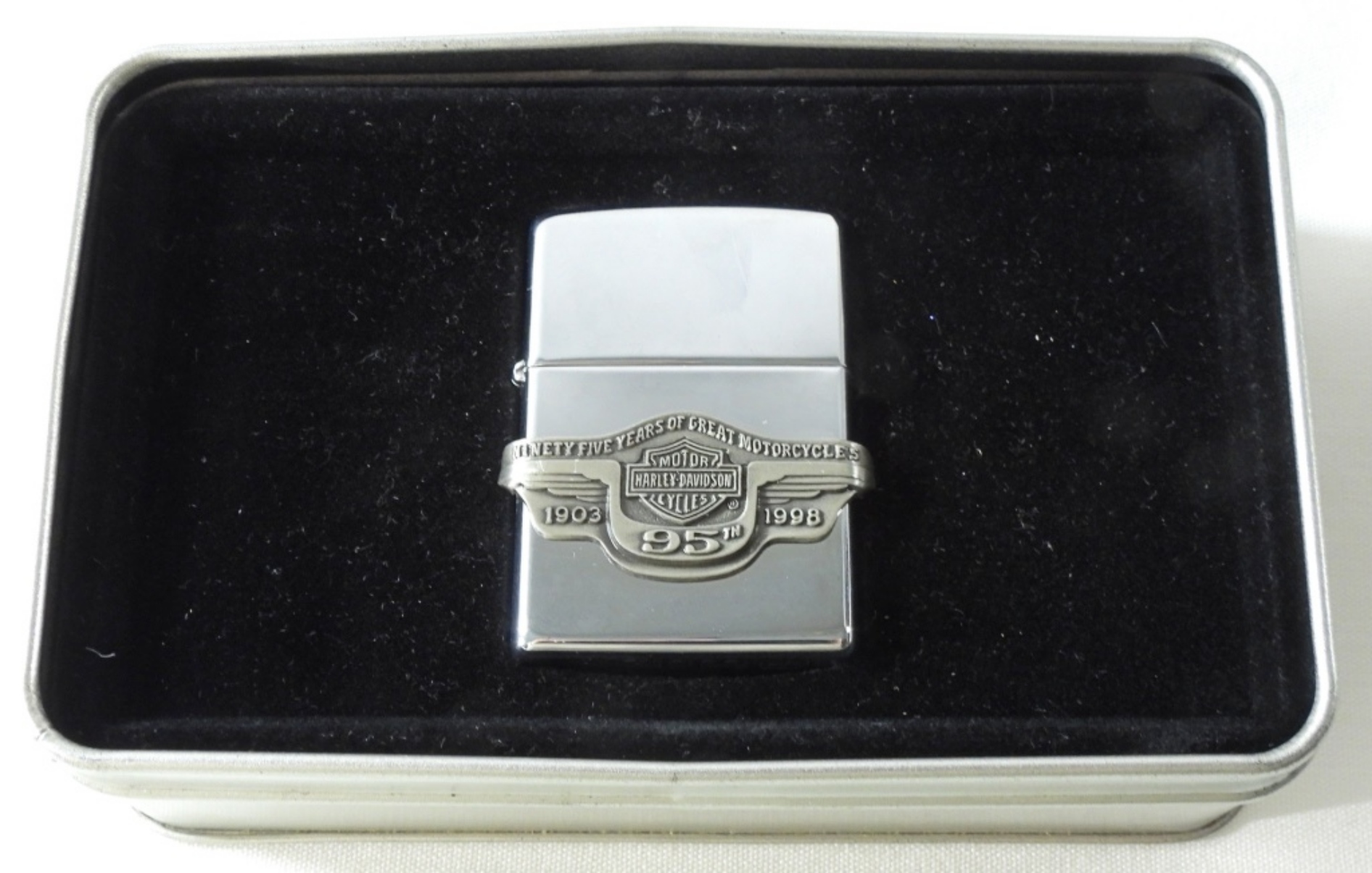 Sealed ninety-five years of great motorcycles, 1903- 1998, 95th anniversary lighter.