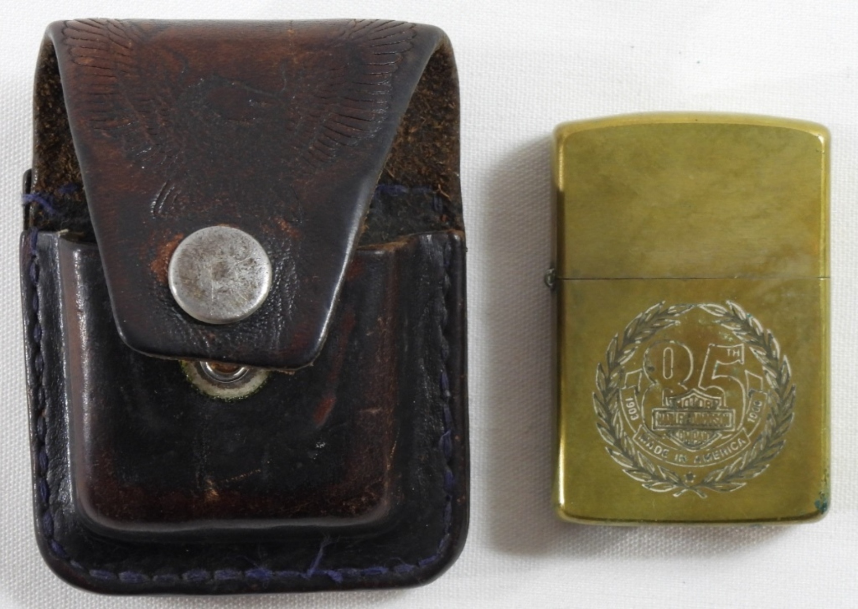 Fired- 1988 85th Anniversary Harley Davidson Zippo with a lighter pouch.