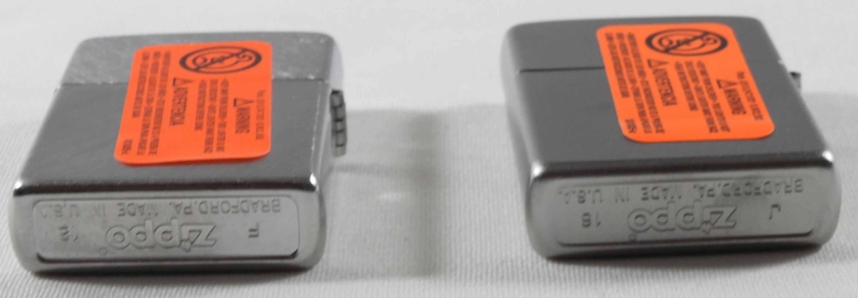 Sealed 2012 and 2016 silver-plated Zippo in box.