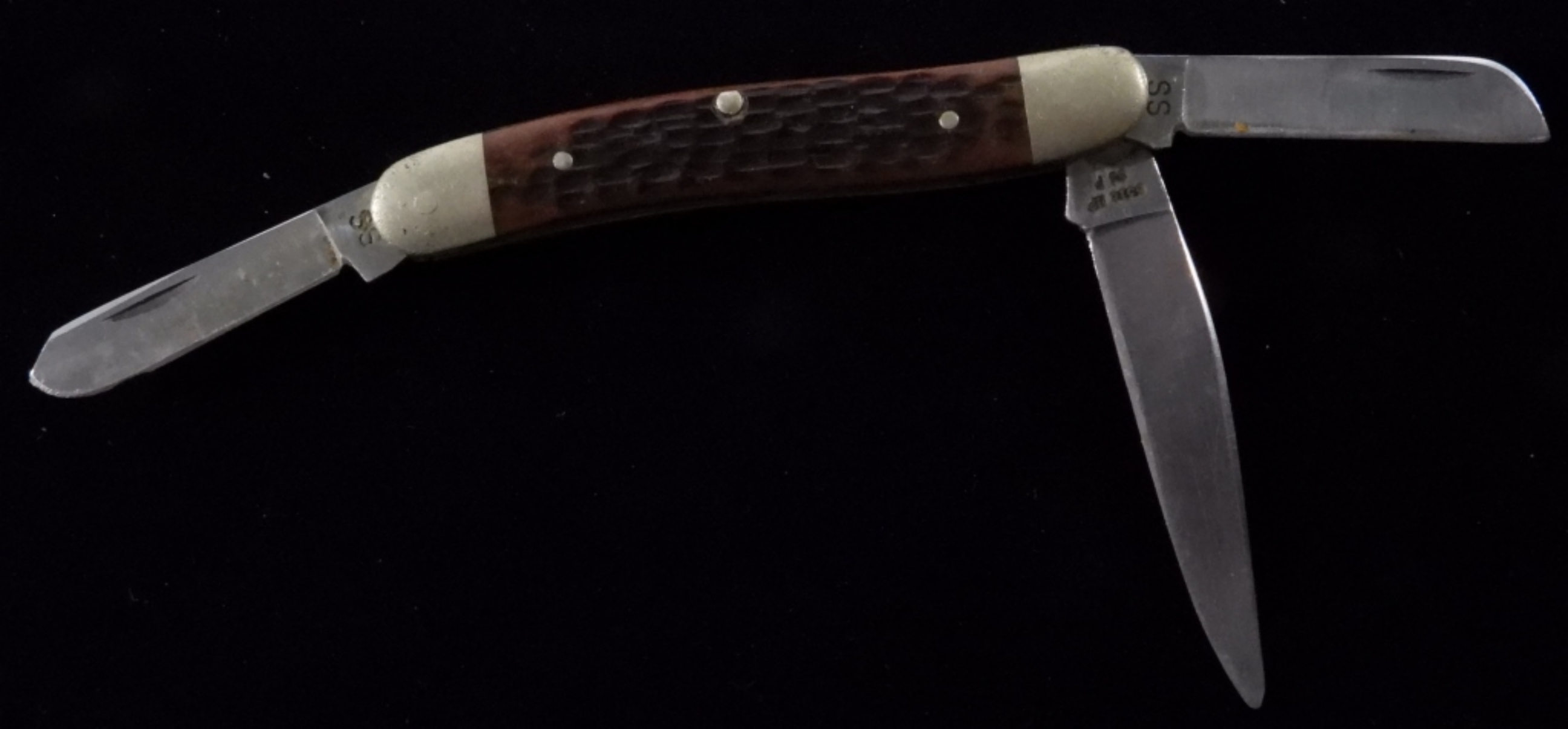 Used 6318 HP SSP Stockman Knife red/brown bone handle